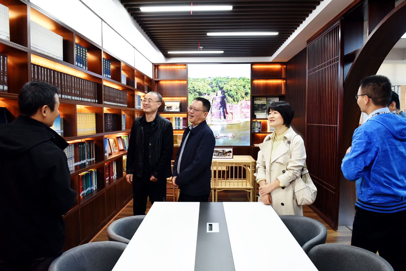 梁俊平一行参观了学校的乐山峨眉武院青江基地、嘉州记忆•地情文化馆、教师发展中心、智慧能源中心、京东产业服务(乐山)运营中心、长三角太阳能光伏技术创新中心四川分中心、多晶硅仿真实训基地等。每到一处,梁俊平一行都仔细聆听讲解,详细了解相关情况。