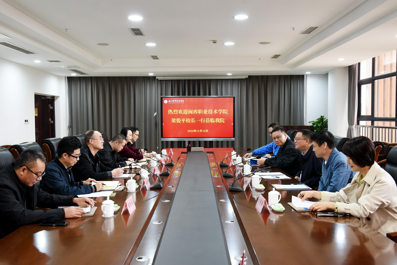 2024年11月14日上午,闽西职业技术学院校长梁俊平一行莅临beat365亚洲版官网考察调研。beat365亚洲版官网校长刘忠及相关部门负责人陪同考察调研。
