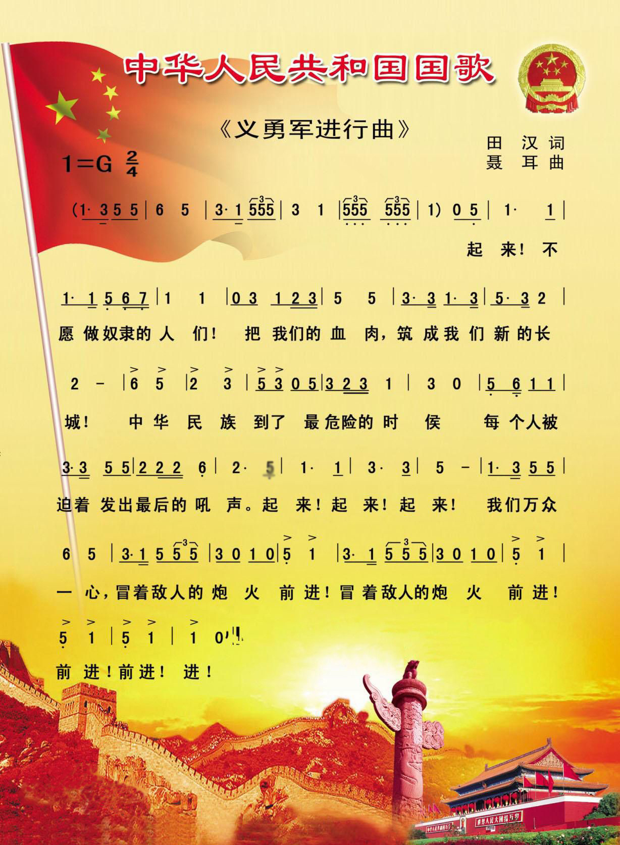 让我们一同高唱!将心中的爱国情绪传递给每个人,在歌声的感召下披荆斩棘、奋勇前进,为中华民族的腾飞作出新的贡献!