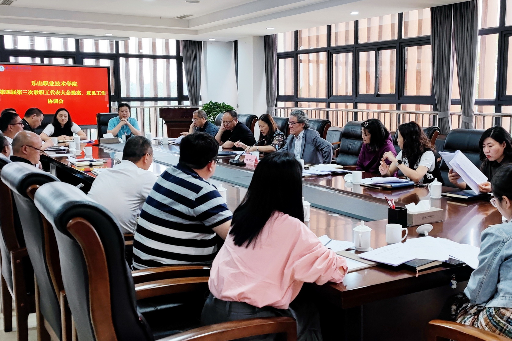 4月13日上午,学院工会在学术交流中心2001会议室召开第四届第三次教职工代表大会提案、意见工作沟通协调会。会议由工会副主席黄晓莉主持,学院党委副书记、工会主席陈芝海出席了会议,各职能处室主要负责人,各二级学院工会主席参加了会议。