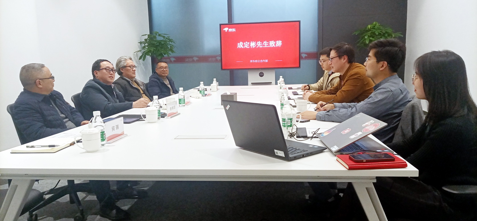 学院和企业双方就校企合作、产教融合,共建京东数字商务产业学院进行了深入探讨。