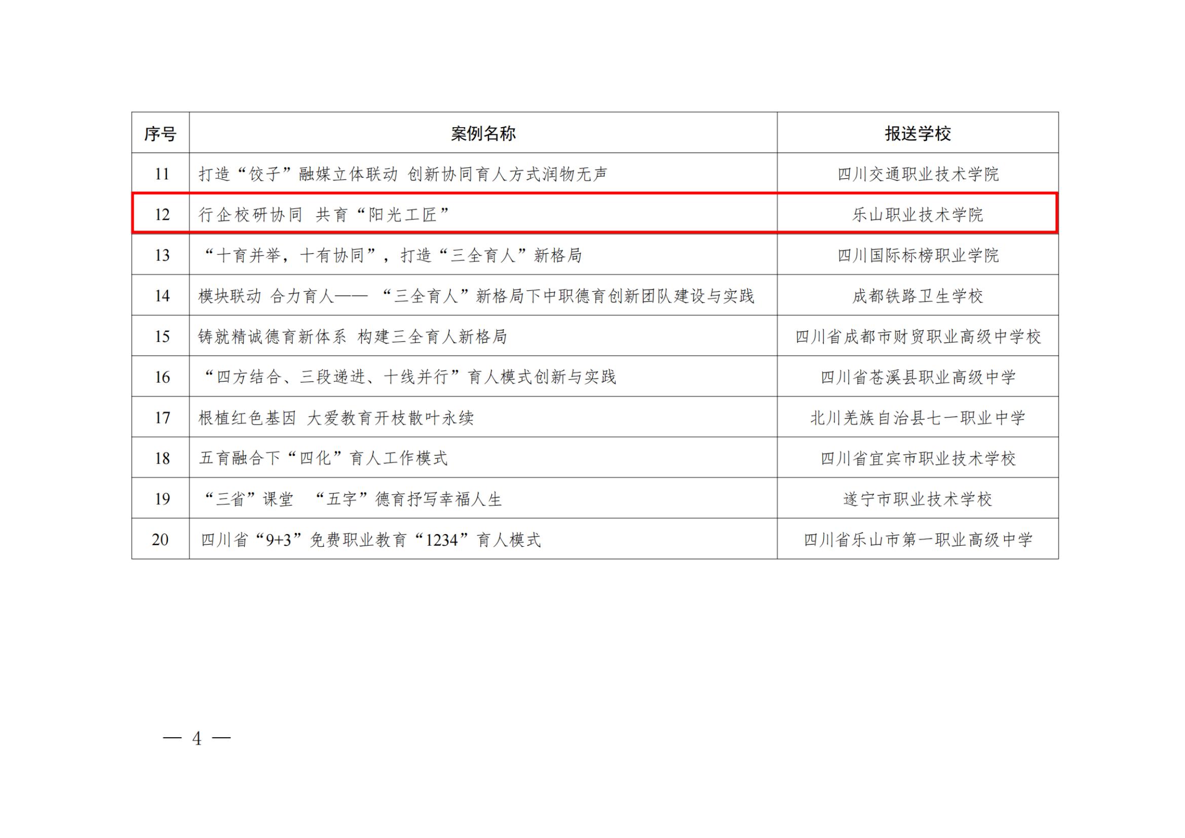 我院《“三全育人”助力质量型扩招 培养“乡村健康守门人”》案例入选2022年四川省职业院校德育与学生管理工作典型案例。