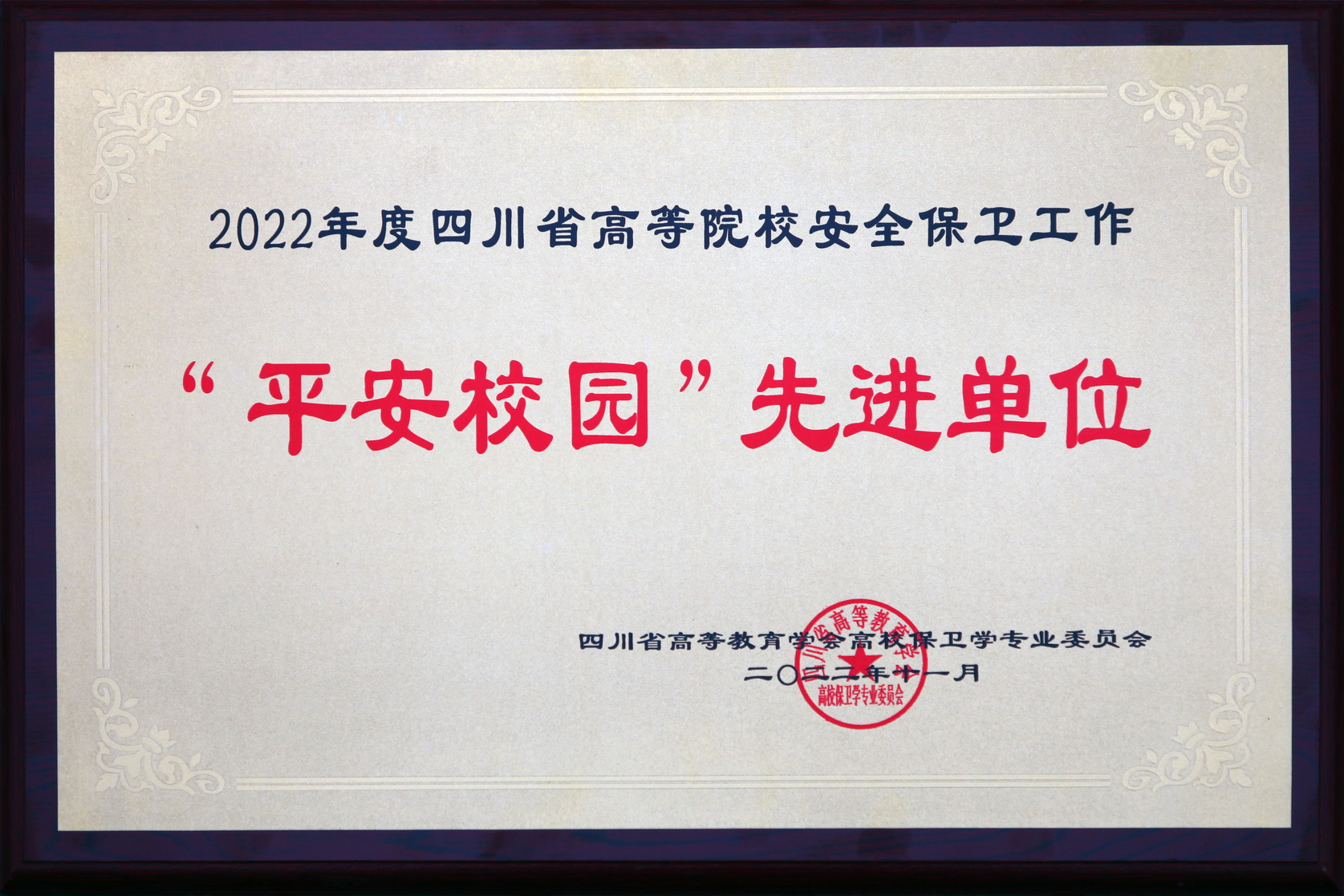 12月15日,四川省高校系统安全保卫工作年会在成都市龙泉驿区花木堂大酒店举行,年会总结了2022年度四川高校系统一年来的安全稳定工作情况,分析研判了下一步安全稳定工作新趋势。会议对2022年度“平安校园”先进单位举行了表彰,学院获得 “平安校园”先进单位荣誉称号。
