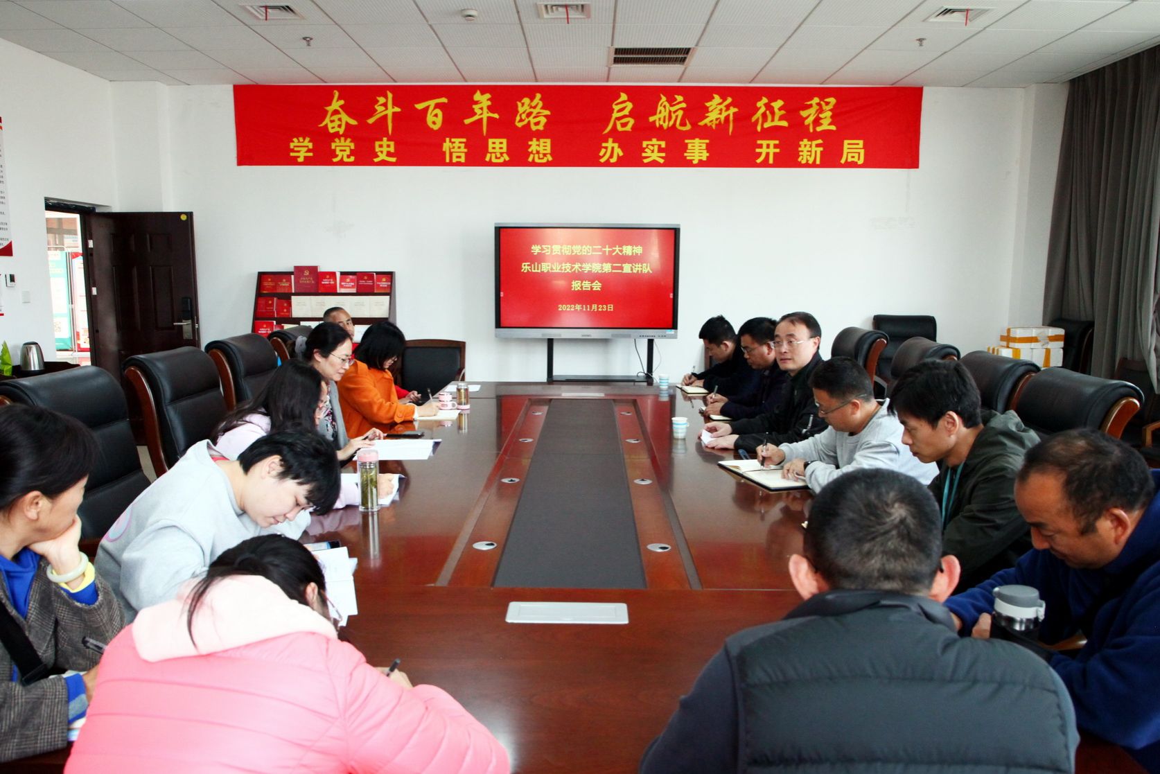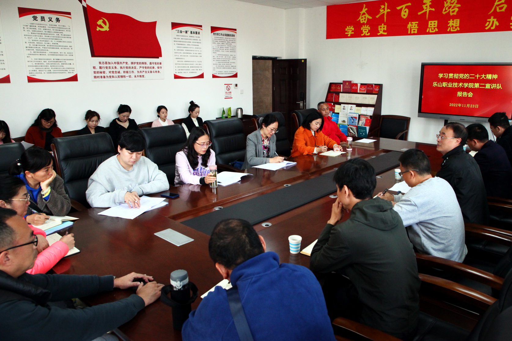 刘忠从党的二十大召开基本情况,党的二十大报告结构、主要内容等方面展开宣讲,对“中国式现代化”“办好人民满意的教育”进行了重点宣讲。他强调,宣讲党的二十大精神,要紧紧与学院工作相结合,确保大会精神在学院实际工作中得以实践。要守牢意识形态底线,紧紧围绕立德树人根本任务,团结奋斗,为国家培养更多高素质技术技能人才、能工巧匠、大国工匠。希望基础公共课程部(体育系)在擦亮乐职国际品牌、传播好中华优秀传统文化、提升学生身体素质方面久久为功,为学院作出更大贡献。