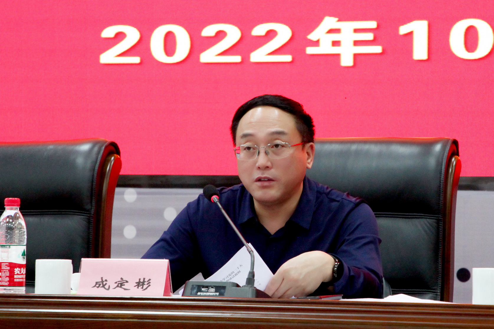 成定彬从充分认识党的二十大的重大意义、深刻领会把握党的二十大精神实质和丰富内涵、坚定不移贯彻落实党的二十大精神、迅速掀起学习宣传贯彻党的二十大精神热潮等四个方面对党的二十大精神进行传达学习。