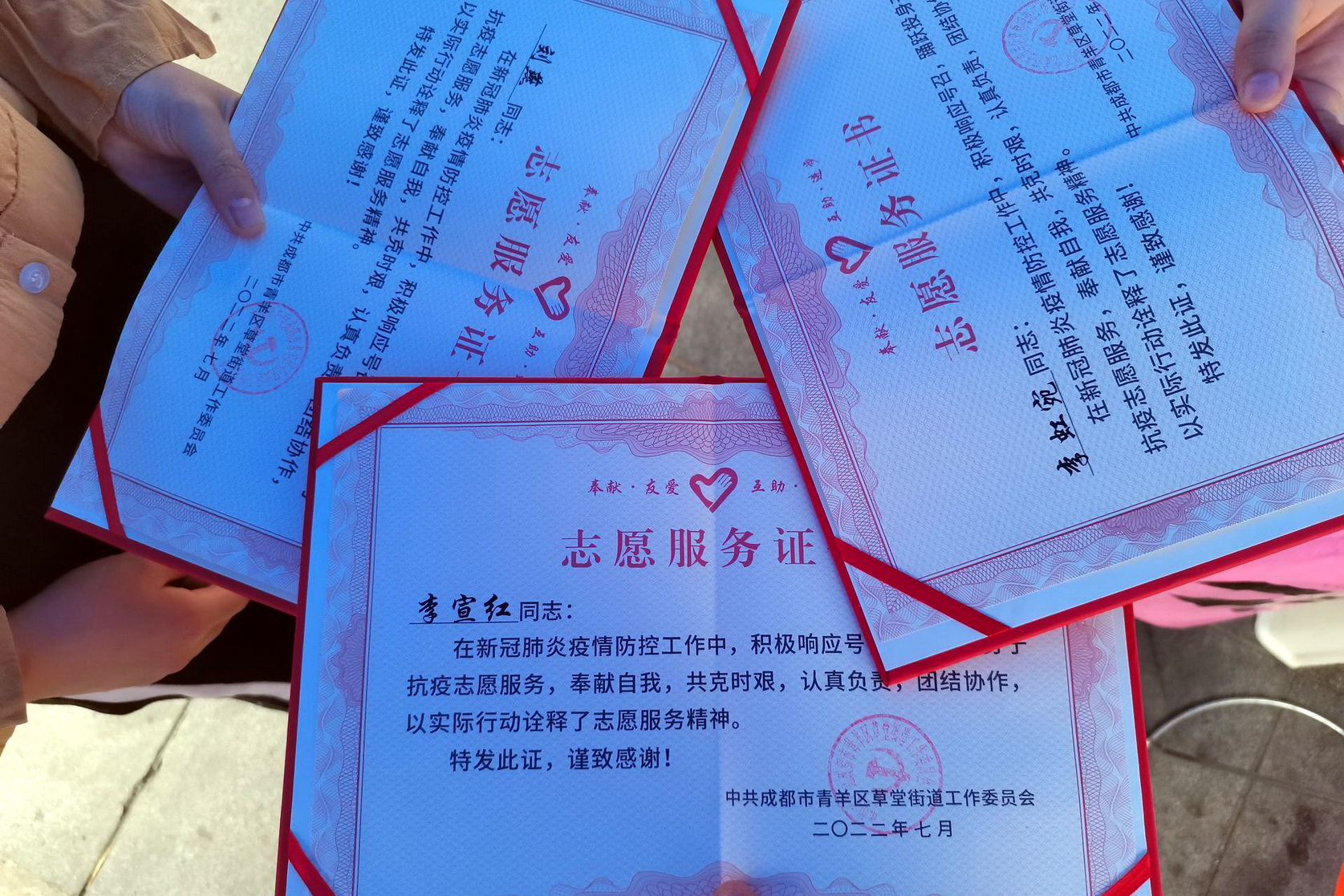 在小区封闭式管理期间,她们作为志愿者,在做好自身防护的前提下,利用所学医学知识,服务于社区居民,协助社区进行后勤生活保障、防疫政策宣传等志愿服务,与社区居民及各志愿者团结协作,同舟共济,共克时艰,以实际行动践行了“奉献、友爱、互助、进步”的志愿服务精神,体现了作为青年一代的责任与担当。