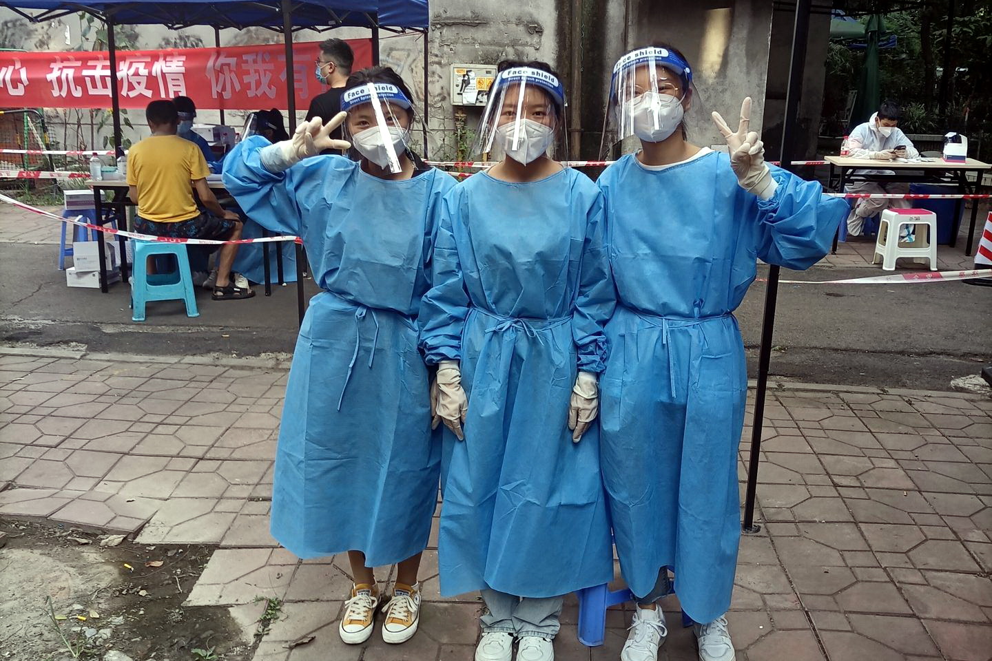 其中,普专对口护理20-5李宣红、李虹宛、刘燕三名同学因居住地出现核酸检测阳性人员,小区实行封闭式管理。看着社区工作人员和医务人员每日工作的艰辛,她们三人在通过核酸检测后,积极响应成都市青羊区草堂街道号召,主动报名担任小区疫情防控志愿者。