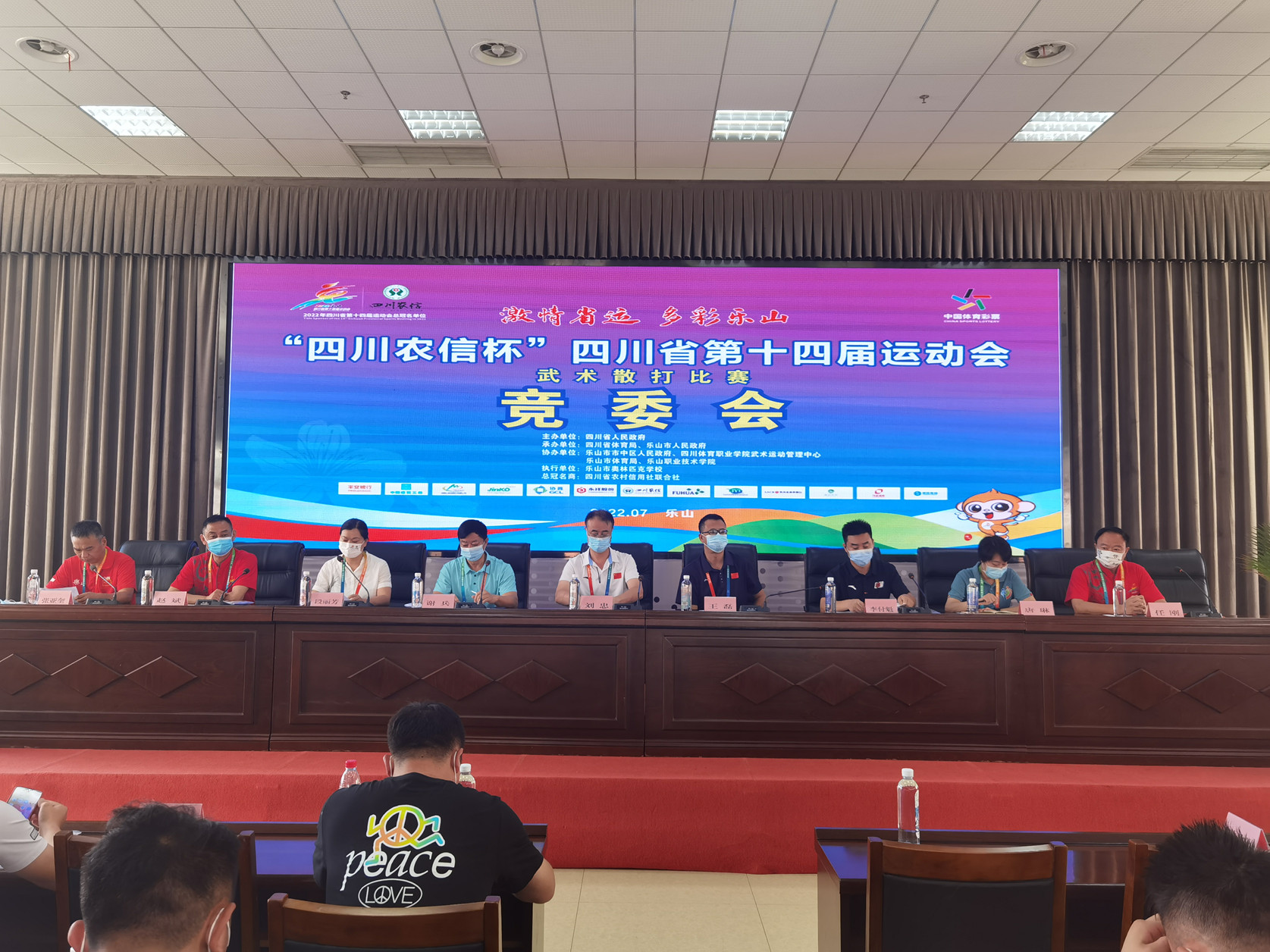7月24日上午,“四川农信杯”2022年四川省第十四届运动会青少年武术散打比赛竞委会在学术交流中心3004会议室举行,学院院长刘忠、四川体育职业学院竞技训练处处长王磊、四川体育职业学院武术运动管理中心项目负责人谢兵、乐山市体育局四级调研员段丽芳等领导出席会议。会议由乐职奥林匹克学校校长张亚奎主持。