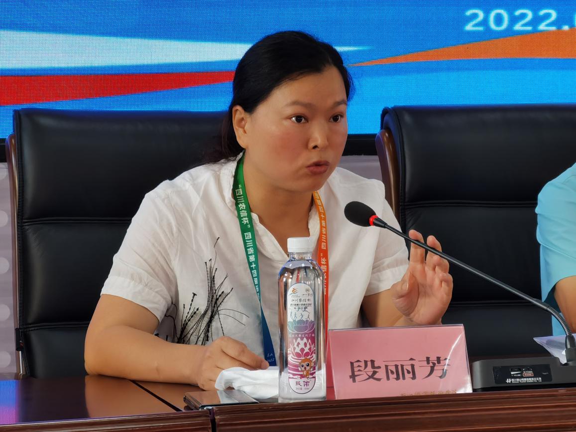 段丽芳代表竞委会致辞,对学院认真做好竞赛保障工作表示充分肯定,对各位领导、教练员、裁判员的到来表示热烈欢迎,对全体工作人员的辛苦付出表示诚挚感谢。