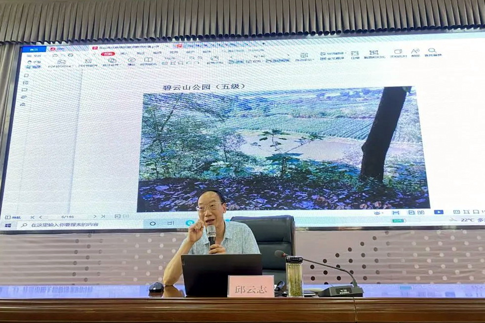 邱志云教授给志愿者们分享了乐山优质旅游资源照片,并从历史概况、历史名人、地理概况、乐山重要荣誉等八个方面对乐山旅游资源进行讲解。