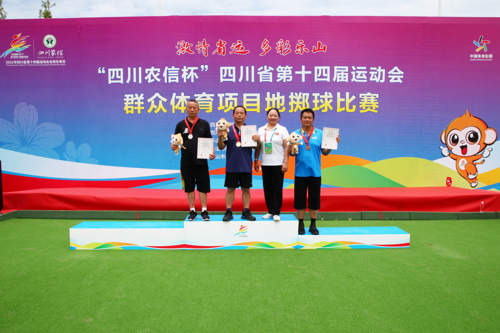 2022年6月27日,四川省第十四届运动会群众体育项目地掷球比赛进入第三天赛程。完成了“塑质球青年男子双人赛”等7个赛项的比赛。乐山代表队在今日的比赛中收获4金1银1铜。