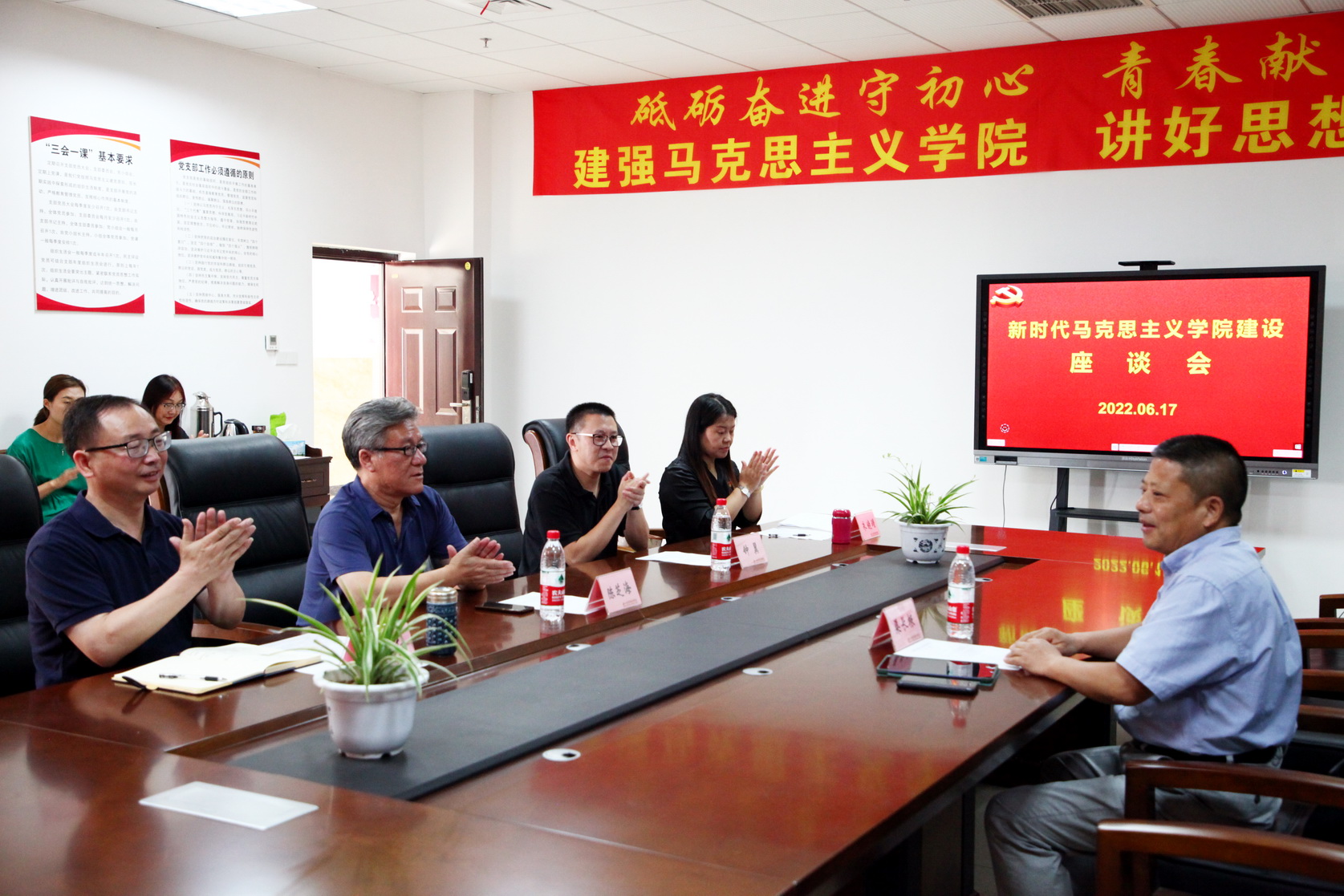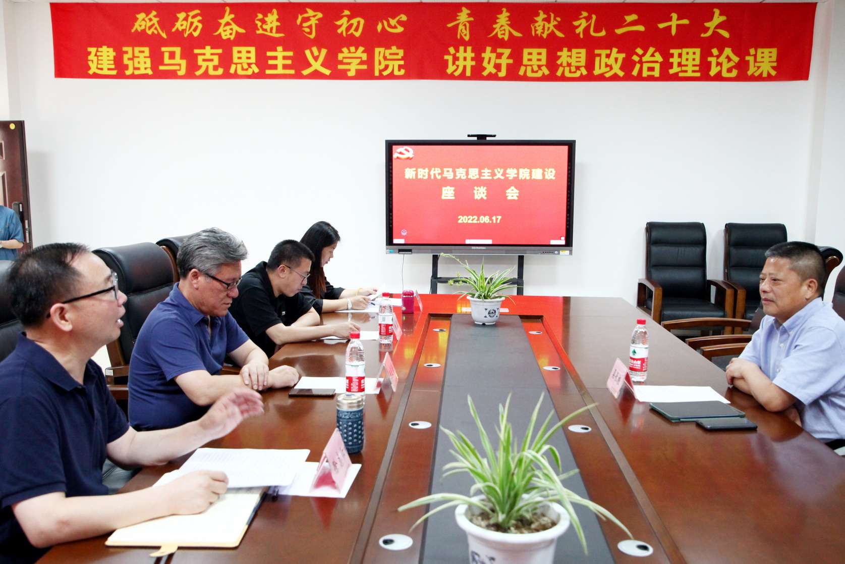 2022年6月17日上午,新时代马克思主义学院建设座谈会在1号教研楼410会议室举行。浙江理工大学红色文化研究院院长、beat365亚洲版官网“青江学者”渠长根教授,学院党委副书记陈芝海,宣传部部长钟翼以及马克思主义学院领导班子和教师代表参加座谈。会议由钟翼主持。