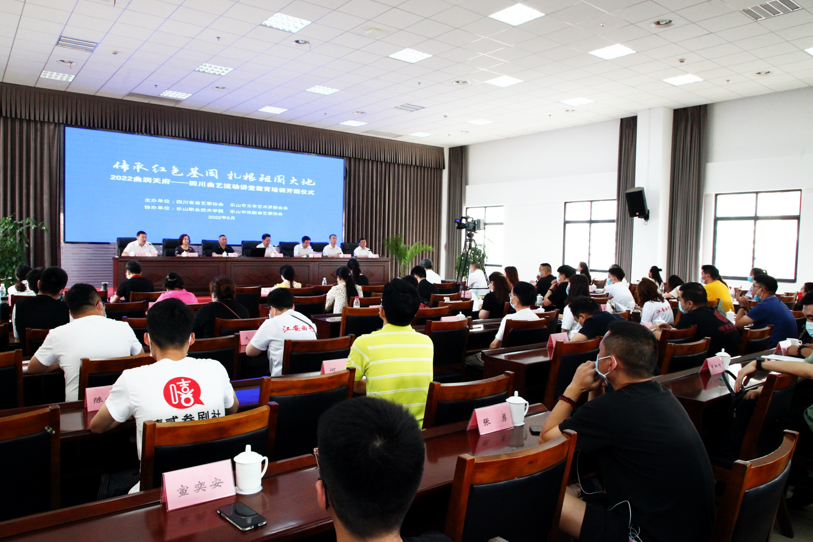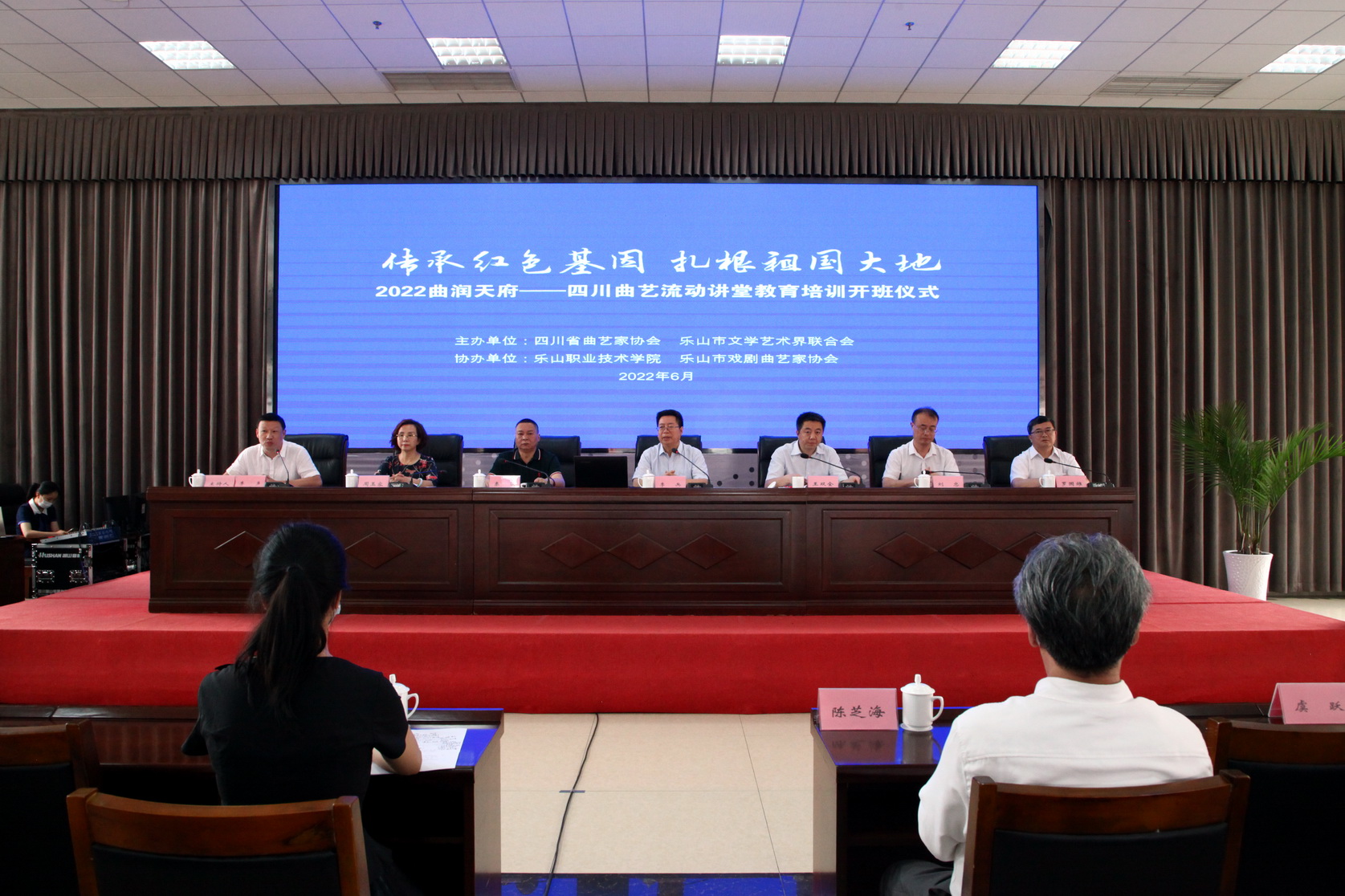 6月13日,由四川省曲艺家协会、乐山市文联主办的“传承红色基因 扎根祖国大地”2022曲润天府——四川曲艺流动讲堂教育培训,在beat365亚洲版官网开班。省文联党组副书记、副主席李兵,市委常委、宣传部部长王双全,省曲艺家协会副主席、巴中市政协副主席秦渊,学院院长刘忠、党委副书记陈芝海出席开班仪式。