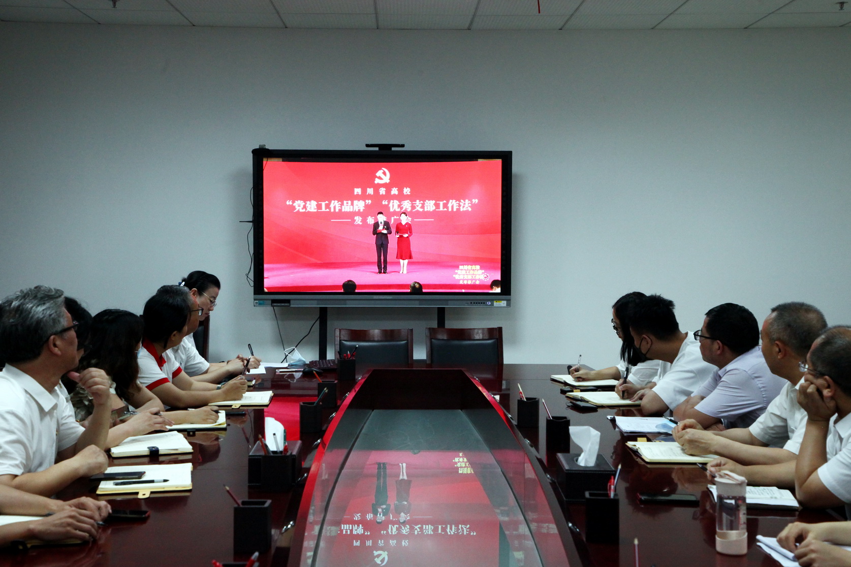 6月15日15:00,四川省高校“党建工作品牌”“优秀支部工作法”发布推广视频会议在成都召开。会上,省委教育工委发布了10个四川省高校“党建工作品牌”、20个四川省高校“优秀支部工作法”,并进行了现场展播。学院党委副书记陈芝海,学院党政办、组织人事部、宣传部主要负责人,各系(部、院)党总支书记,基层党支部负责人进行了集中收看。