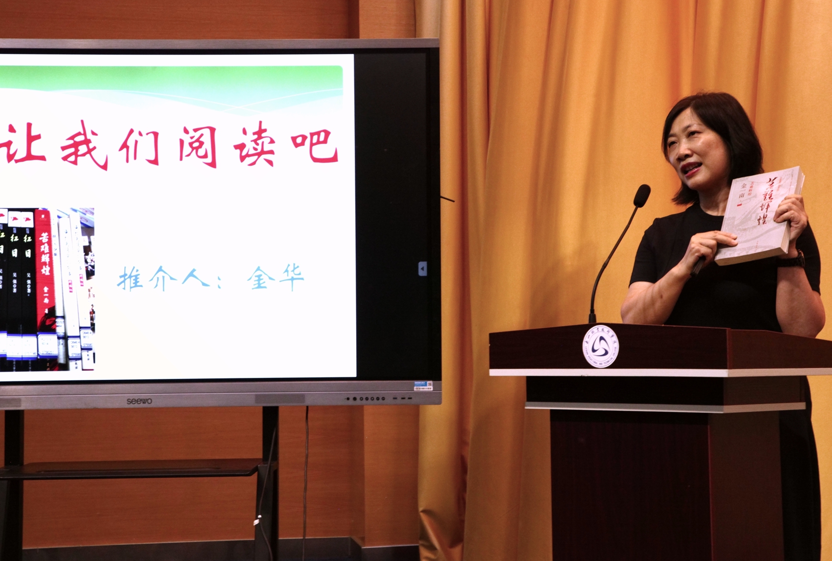 各系老师从专业角度进行了新书推荐。马克思主义学院金华老师向在座的读者推荐了《苦难辉煌》和《自律》两本书。护理系(医学系)黄秀丽老师,从医学生和普通读者两个角度向大家推荐了《中医经典故事选集》、《家庭急救手册》等书籍。药学系孙川老师从考取执业资格证书及未来就业的角度向大家推荐了《天然药物化学与药物管理》《中药炮制技术》等书籍。电子信息工程系康文涛老师从为什么要读书、读书的态度、读什么书三个方面分享了自己的感悟,并向读者推荐了《人工智能之不能》《Javascript20年》两本书籍。新能源工程系胡釜老师推荐了美国理查德·罗兹的《能源传》。最后,图书馆戴善琼老师针对推荐的书籍分享了自己的阅读体验,进一步加深了读者对推荐书籍的认知。通过专业老师的书籍推荐,让同学们了解了读书的方向,也解答了同学们的读书疑惑。