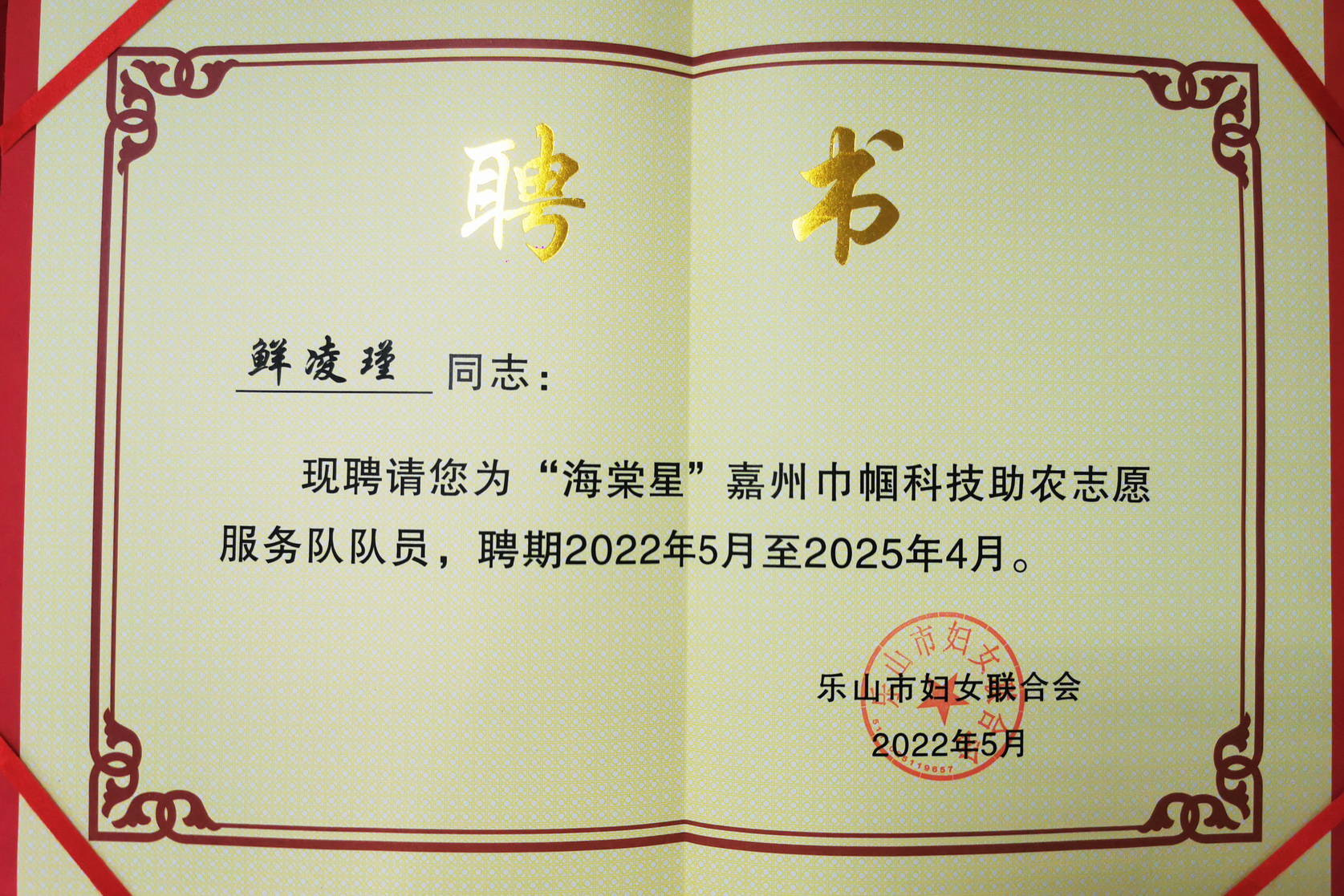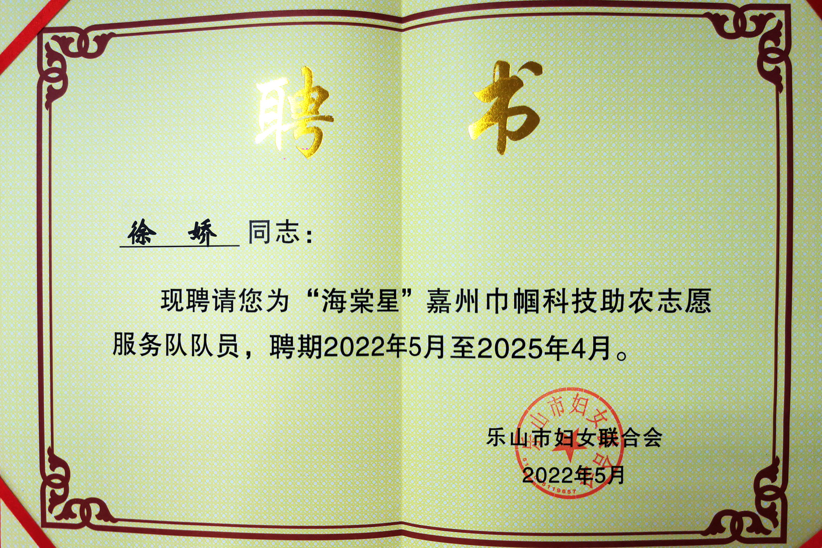5月25日,乐山市妇女联合会组织召开乡村振兴巾帼人才培养计划启动仪式。乐山市委常委、统战部部长郭捷出席会议。会上,乐山市委组织部、市妇联、市科技局、市农业农村局、市科协相关领导向“海棠星”嘉州巾帼科技助农志愿服务队队员颁发聘书。beat365亚洲版官网鲜凌瑾、徐娇两位博士入选服务队。