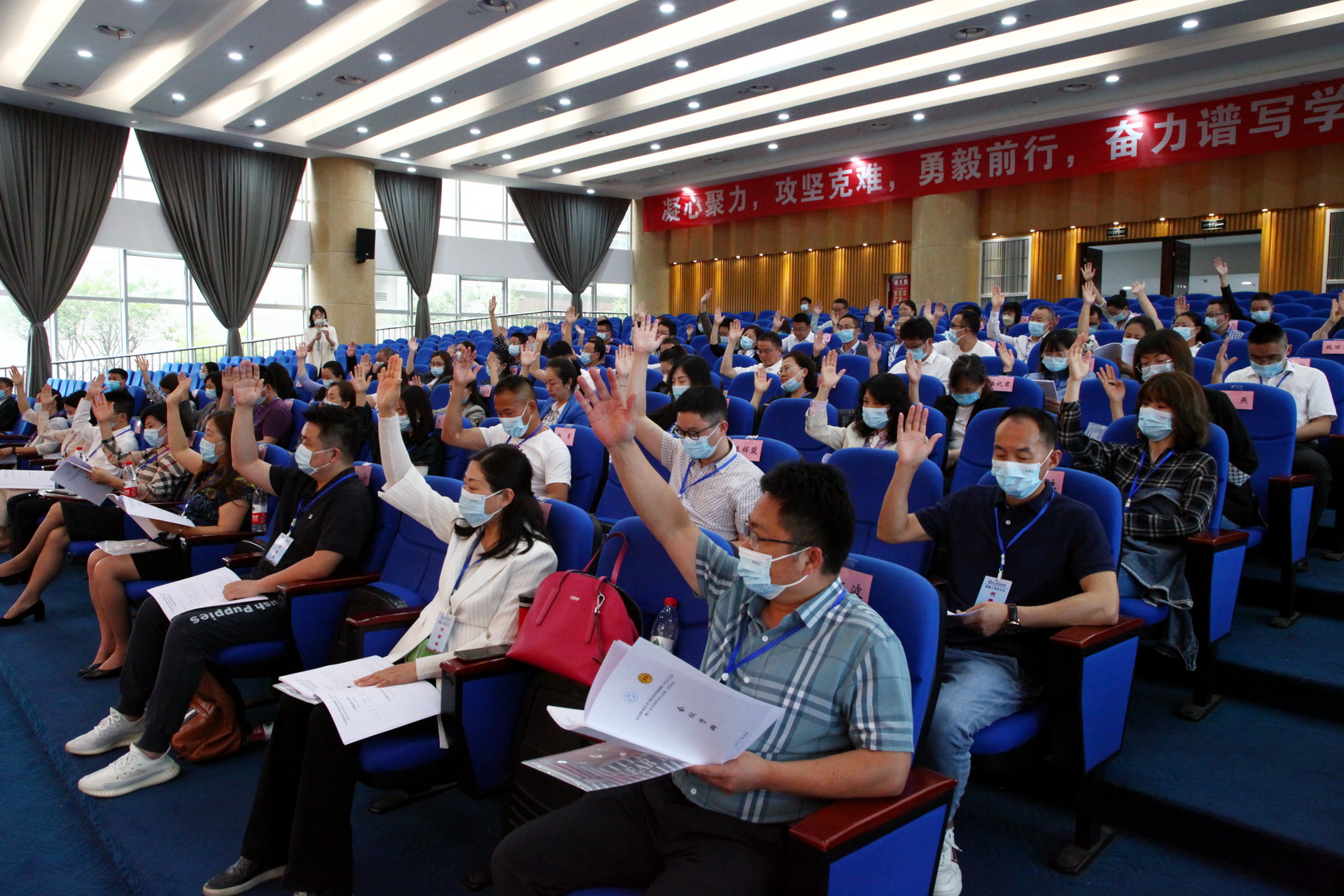 最后,在国际歌歌声中,beat365亚洲版官网第四届教职工代表大会暨工会会员代表大会第二次会议胜利闭幕。