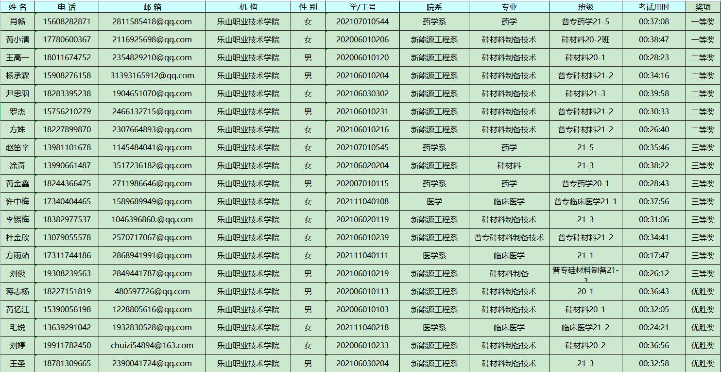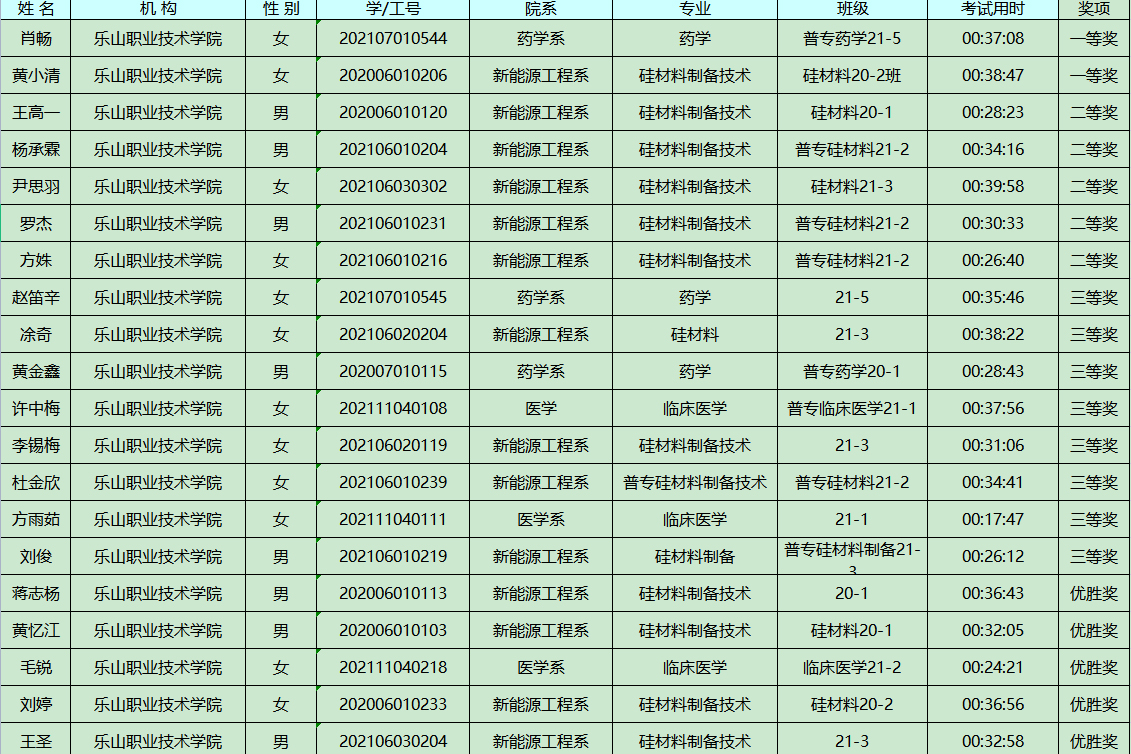 挑战赛共吸引全院300余名学生报名参赛,最终224名学生参与考试,评出一等奖2名,二等奖5名,三等奖8名。本次挑战赛的成功举行,为全院学生深入了解图书馆文献信息资源,提高信息检索技能提供了良好契机,图书馆也将继续创新服务模式,积极开发和宣传文献信息资源,开拓学生信息素养教育新模式。同时,本次信息素养挑战赛也为下半年全国高职院校信息素养大赛四川赛区选拔赛奠定了基础。