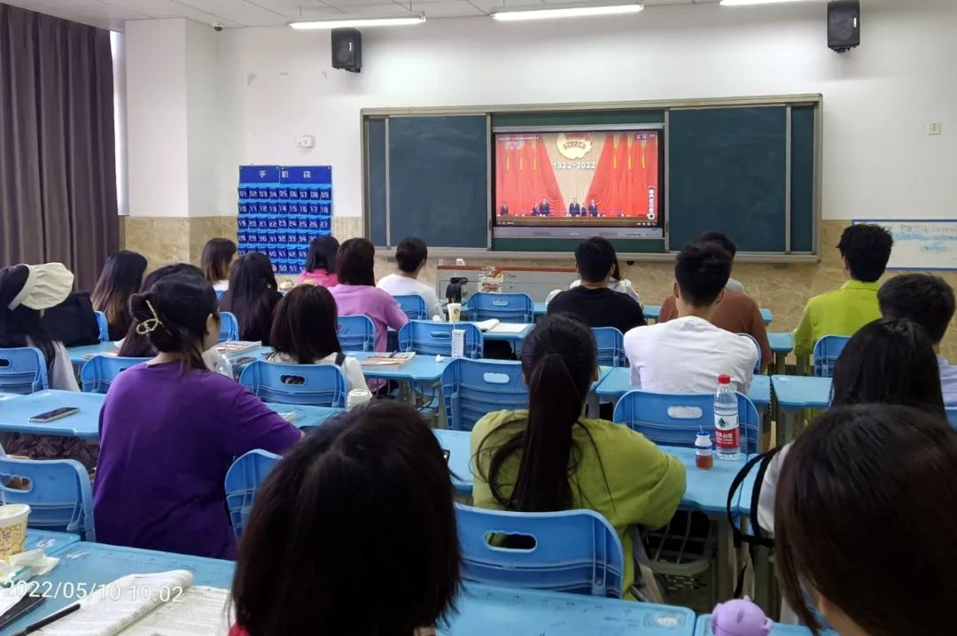 2022年5月10日上午10点,庆祝中国共产主义青年团成立100周年大会在北京人民大会堂隆重举行。中共中央总书记、国家主席、中央军委主席习近平出席大会并发表重要讲话。beat365亚洲版官网组织全院学生,通过集中收看和分散收看的方式观看了直播节目,引起了学生热烈反响。