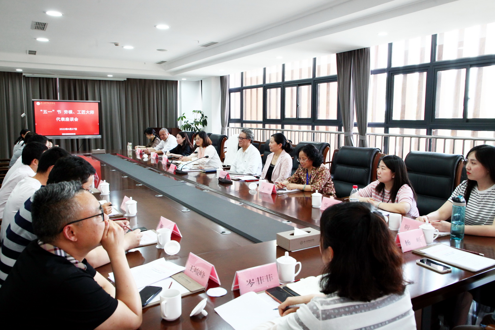 4月27日下午,学院工会在学术交流中心2001会议室组织召开庆祝五一国际劳动节劳模、工匠大师等优秀代表座谈会,学院省市劳模、三八红旗手、工匠大师和2021年四川省教师教学能力大赛团队代表等共20余人参加了会议,会议特邀乐山市人民医院工会主席马智群参加,学院党委副书记、工会主席陈芝海出席,座谈会由工会副主席黄晓莉主持。