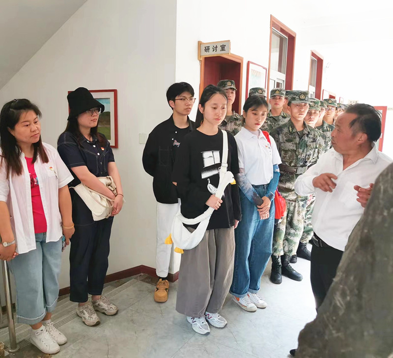 参观结束,回展馆沿途的二楼楼梯口,王帮华馆长给大家讲述了南瓜藏蛋的经典故事,让同学们切身感受到铁道兵与群众的军民鱼水情更深。在三楼教室,王帮华为大家讲授了一场特殊的思政微党课,结合铁道兵当年艰苦而光荣的历史,阐释了军人为了祖国和人民不怕牺牲,战天斗地的铮铮铁骨,勉励新时代青年要居安思危,胸怀“国之大者”,为实现中华民族伟大复兴而不懈奋斗。