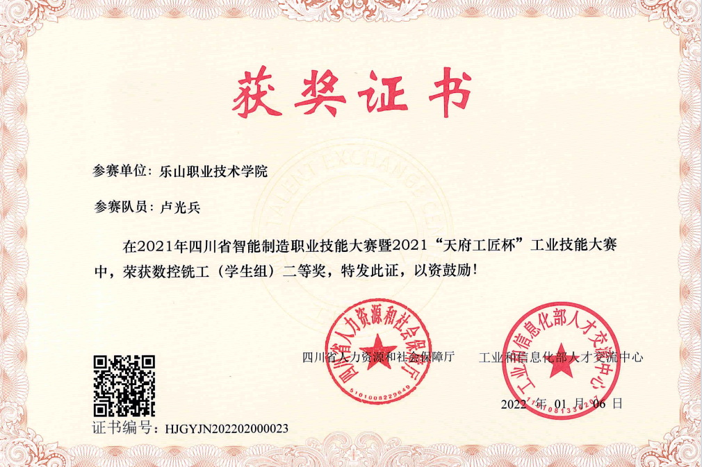面对成都、绵阳、德阳等地市的强劲对手,参赛师生积极准备、刻苦训练,依托机电工程系和省级技能大师工作室的支持与帮助,凭借良好的心理素质、过硬的专业技能水平,取得了良好的成绩。其中:由方鹏、陈强老师指导,普专机械20-1班卢光兵参赛的数控铣工赛项夺得第3名,获省二等奖并直接晋级技师;由赵鑫、杨爽老师指导,普专机器人21-2班韦一菲参赛的工业机器人技术应用赛项夺得第8名,获省三等奖;由方鹏、陈强老师指导,普专机械20-1班胡天晴参赛的数控车工赛项夺得了第9名。
