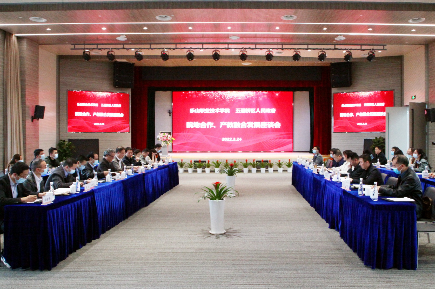 2022年3月24日下午,学院院长刘忠、党委副书记陈芝海带队赴五通桥区调研光伏产业发展,与五通桥区政府座谈合作共建乐山绿色硅谷产业学院相关事宜,乐山市教育局四级调研员姜杰,学院党委委员、副院长封家福,党政办、组织人事部、宣传部、教务处、新能源工程系、机电工程系负责人参加调研。