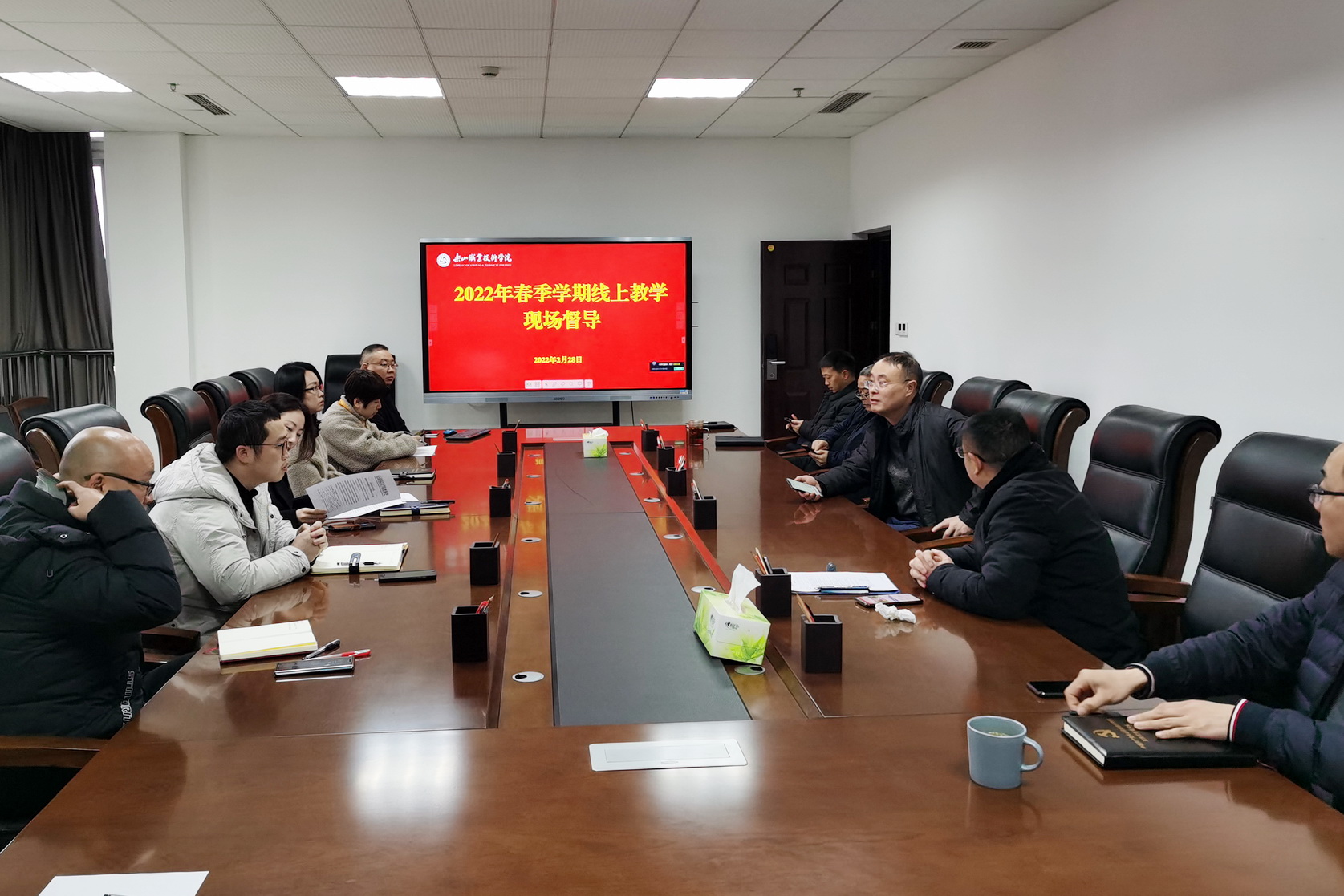 为贯彻落实教育部及省教育厅关于“停课不停教,停课不停学”、保证教学质量始终在线的精神,并切实做好安全稳定工作,根据《beat365亚洲版官网2022年春季学期开学工作方案》《beat365亚洲版官网2022年春季学期线上教学督导工作方案》,2月28日上午,学院在行政楼324召开了2022年春季学期线上教学现场督导和安全工作会。学院院长刘忠,党委副书记陈芝海,副院长陈元进、张学河、封家福、鲍学东,党政办、教务处、学工部、保卫处相关负责人参加会议。