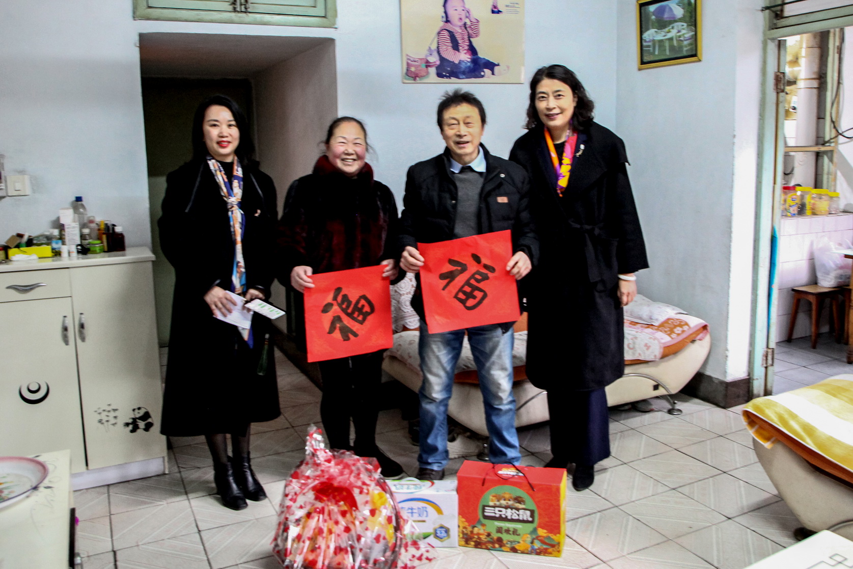 易群还专程来到原城北校区职工宿舍,看望了帮扶干部刘科的父母,送上了慰问品和新春“福”字,向他们对刘科工作的支持表达了谢意,并祝二老新年快乐。