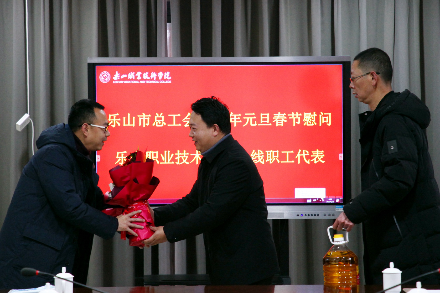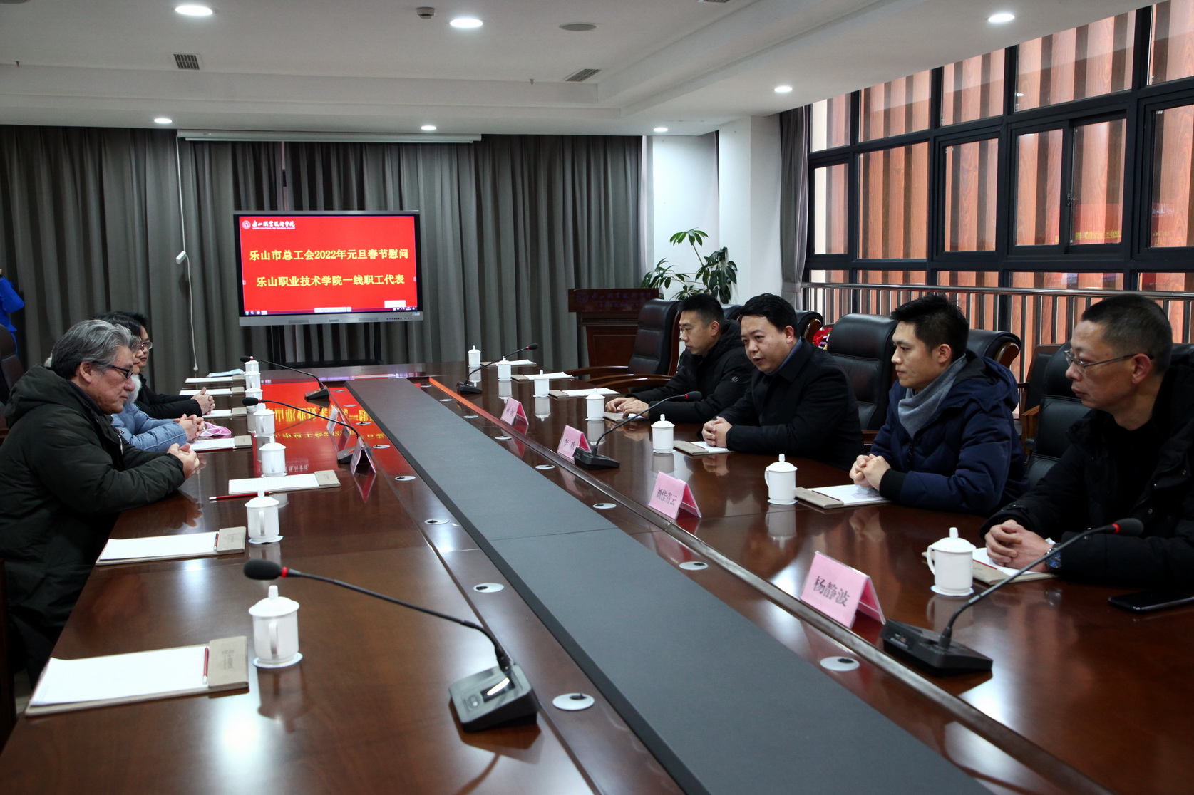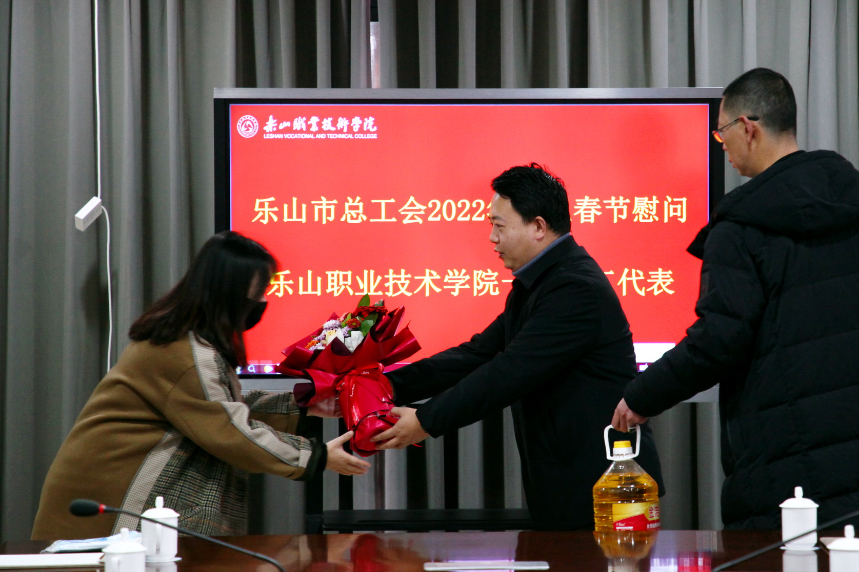 2022年1月21日,农历腊月十九,虽然还是寒意浓浓,但beat365亚洲版官网学术交流中心2001会议室里却充满着欢声笑语和浓浓的暖意。乐山市总工会副主席李欢一行四人莅临学院慰问一线教职工代表。