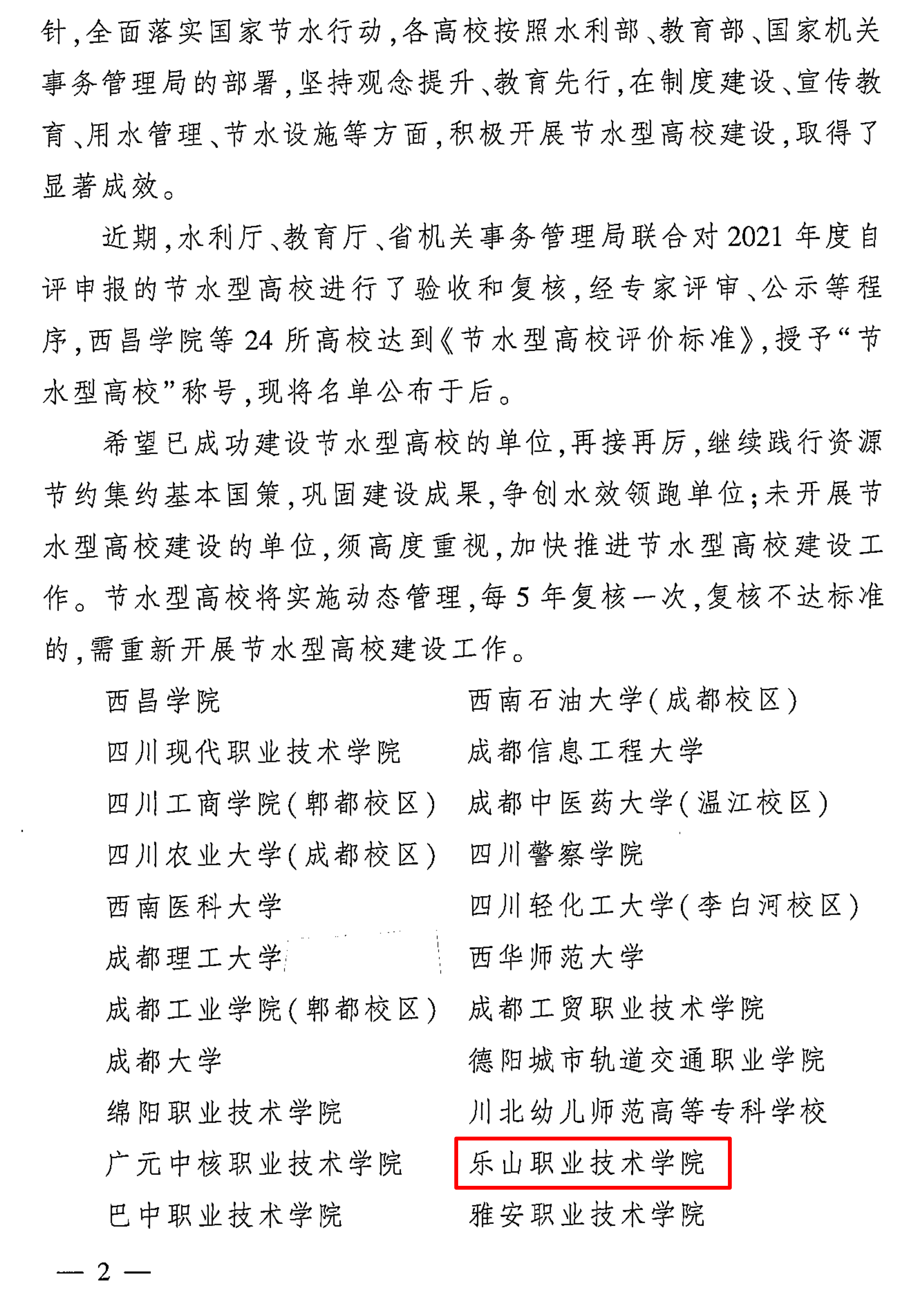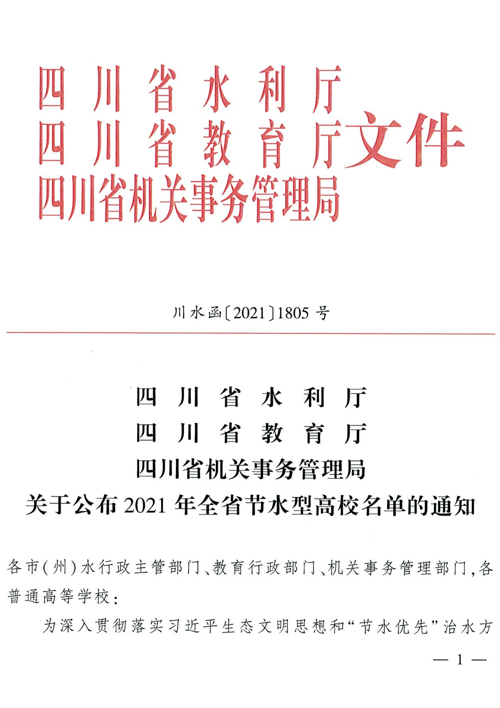 近日,beat365亚洲版官网被四川省水利厅、省教育厅、省机关事务管理局联合授予“四川省节水型高校”荣誉称号。