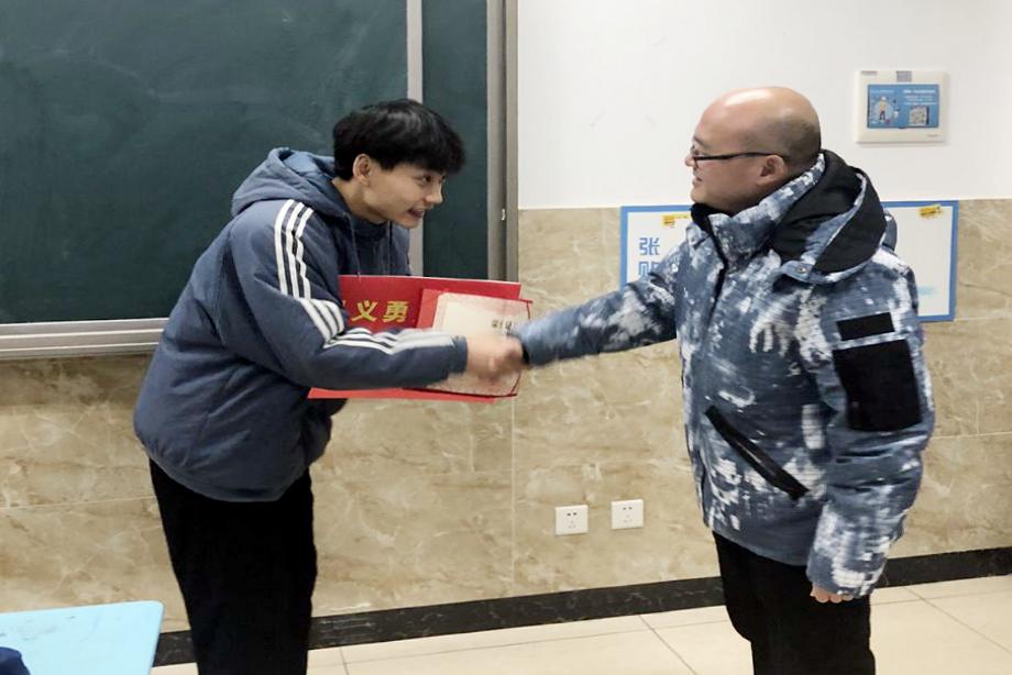 2021年12月27日晚,旅游系烹调工艺与营养21级1班夏伟豪同学被学院授予了“beat365亚洲版官网2021年见义勇为奖”荣誉证书,并接受了奖金1000元,在场师生用最热烈的掌声向夏伟豪同学表示祝贺。