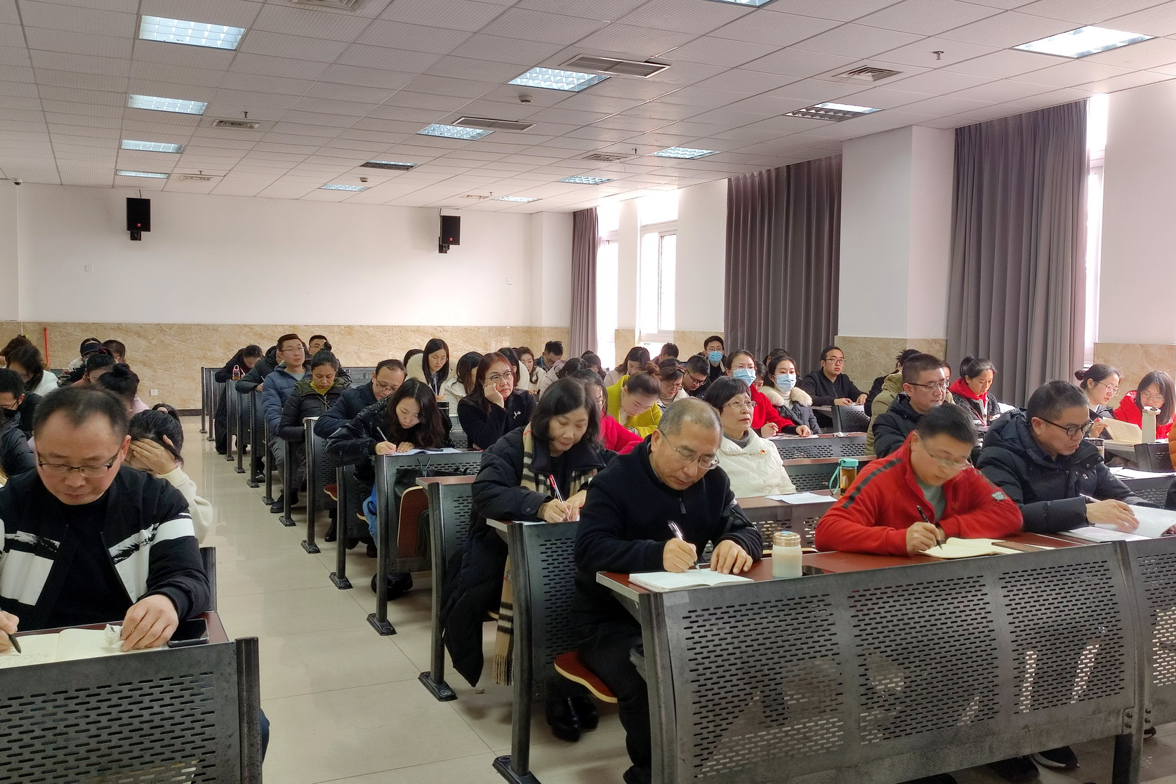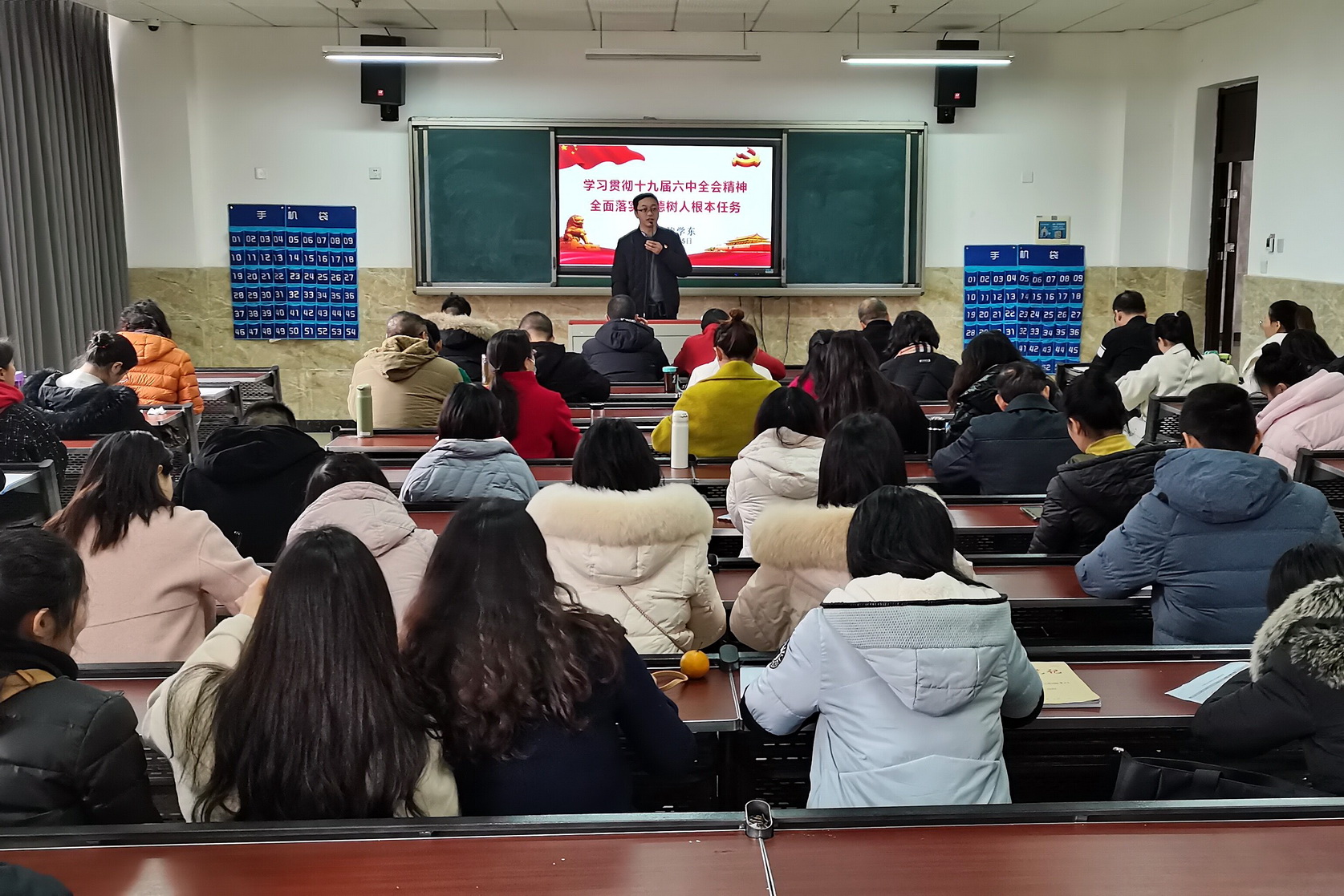 2021年12月15日中午,学院党委委员、副院长鲍学东在教学楼1B104教室,为马克思主义学院、基础公共课程部(体育系)、机电工程系全体党员上党课。