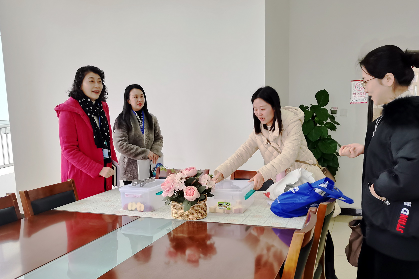 最后,易群在教师休息室开展调研,对教师休息室糕点水果准备、设施设备布置等表示满意。要求相关职能部门要做好后勤保障,维护好设施设备和环境卫生,让任课教师有一个温馨舒适的休息场所。