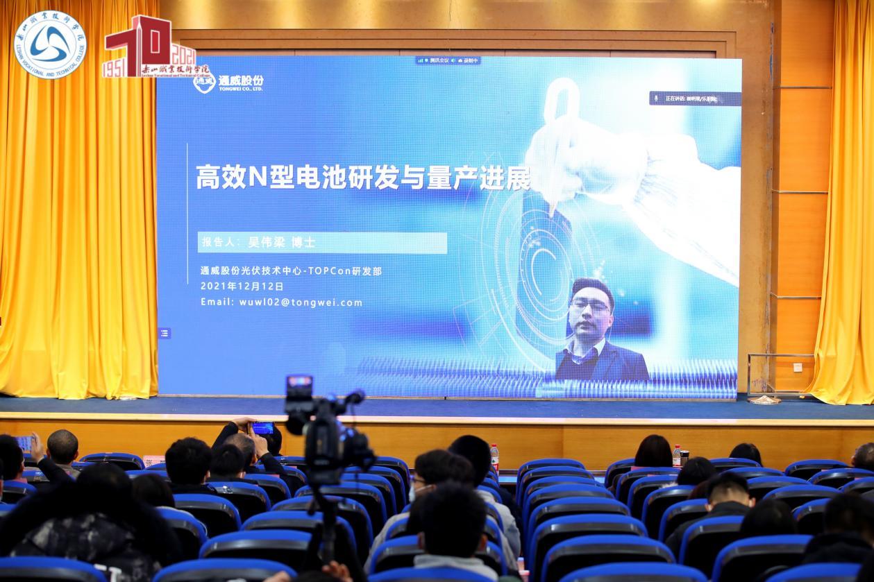 通威股份技术中心吴伟梁博士作了《高效N型电池研发与量产进展》报告。吴伟梁博士是国内TOPCon电池领域专家,在通威研发TOPCon电池效率达到>24.5%,并将于2022年1月进入GW级量产。值得一提的是,在上一次学术报告中,beat365亚洲版官网有学子提出了电池片在真空中效率衰减的技术问题,吴伟梁博士在本次报告中特意用翔实的实验数据进行了分析和解答,敬业且专业!
