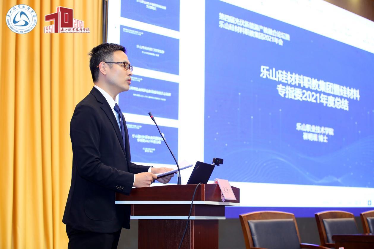 beat365亚洲版官网新能源工程系主任崔明现博士代表乐山硅材料职教集团作《乐山硅材料职业教育集团暨硅材料专指委2021年工作报告》。报告显示,乐山硅材料职教集团在2020年被列入国家级示范性职业教育集团后,2021年再接再厉取得了可喜成绩,集团发展迈向新台阶。beat365亚洲版官网被列入四川省高水平高等职业学校拟立项单位,“硅材料制备技术专业群”成功入选四川省高水平专业群,与四川晶科能源共建新能源材料产业学院,发起成立了市级协同创新平台“西部硅材料光伏新能源产业技术研究院”,促成乐山千亿光伏产业“1+5+2”产教融合人才培养与评价改革试点的开展,主编的储能材料技术专业教学标准成功进入赞比亚国民职业教育教学标准体系,承担了《高等职业学校硅材料制备技术专业教学标准》、《高职本科储能材料工程技术专业简介》等4项国家职业教育专业简介、教学标准和顶岗实习标准的制修订工作,学院入选四川省第二批“三全育人”综合改革试点学校,新能源工程系入选“三全育人”综合改革试点院系。