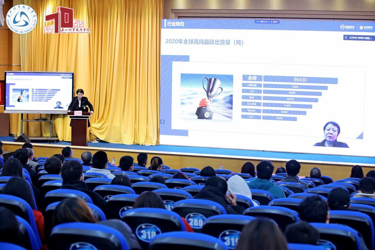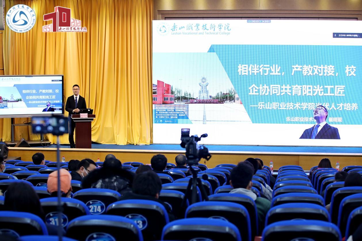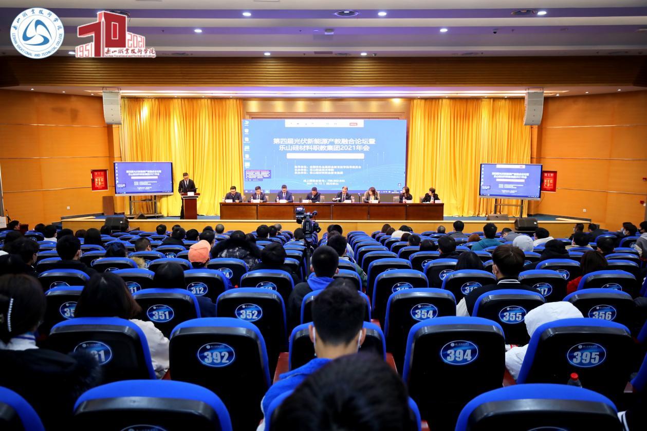 2021年12月12日,在beat365亚洲版官网办学70周年之际,第四届光伏新能源产教融合论坛暨乐山硅材料职业教育集团2021年会在beat365亚洲版官网成功举办。来自光伏新能源行业、企业和院校等30余家单位的250余名代表共聚一堂,以线上线下相结合的方式参加了本次论坛。beat365亚洲版官网院长刘忠、有色金属工业人才中心教育培训处副处长祝丽华、山东理工职业学院党委书记许可、晶科能源股份有限公司副总裁谢冠森、乐山市经信局副局长张翼、乐山市五通桥区副区长郑重、中国光伏行业协会主任研究员江华、清华大学能源转型与社会发展研究中心常务副主任何继江博士、四川永祥多晶硅有限公司总经理刘逸枫博士、青岛高测股份有限公司研发生产总监邢旭、通威股份技术中心吴伟梁博士、徐州工程学院物理与新能源学院院长滕道祥教授等领导和专家出席了本次论坛。