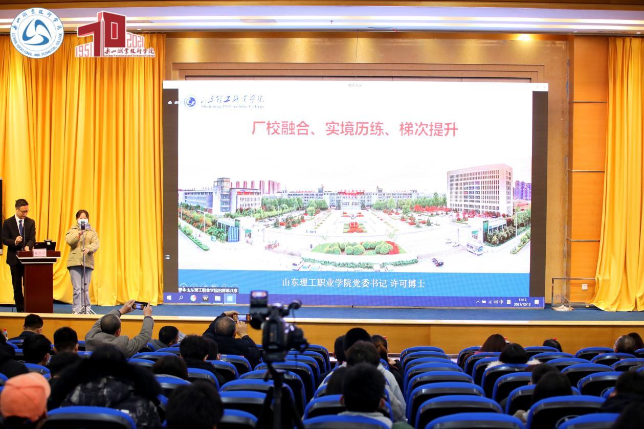 山东理工职业学院科研处处长、能源与材料工程学院党总支书记周宏强以《厂校融合、实境历练、梯次提升》为题分享了山东理工职业学院在产教融合方面的经验。
