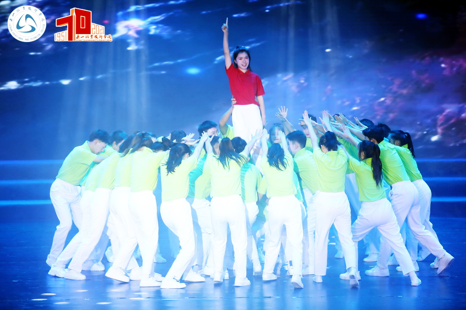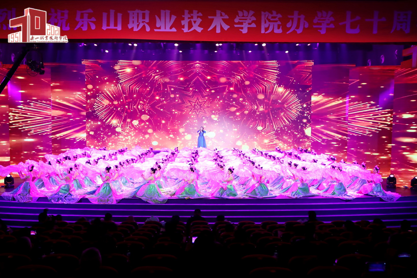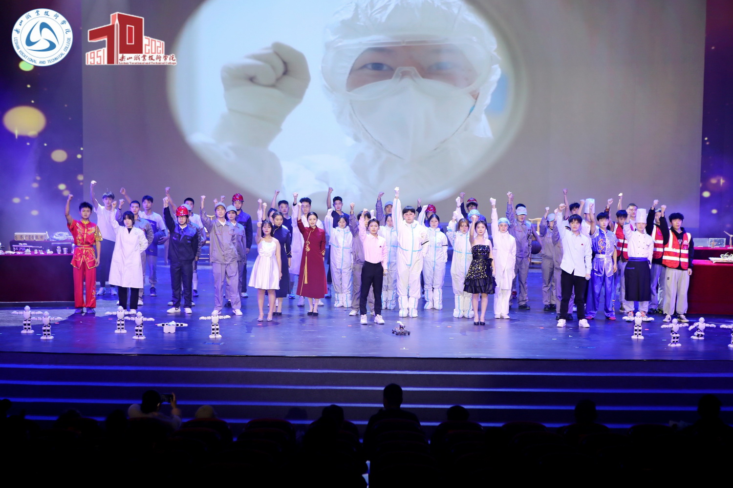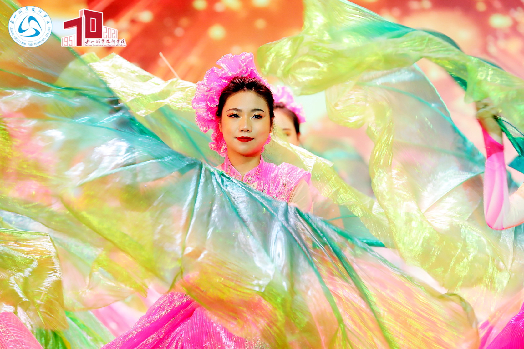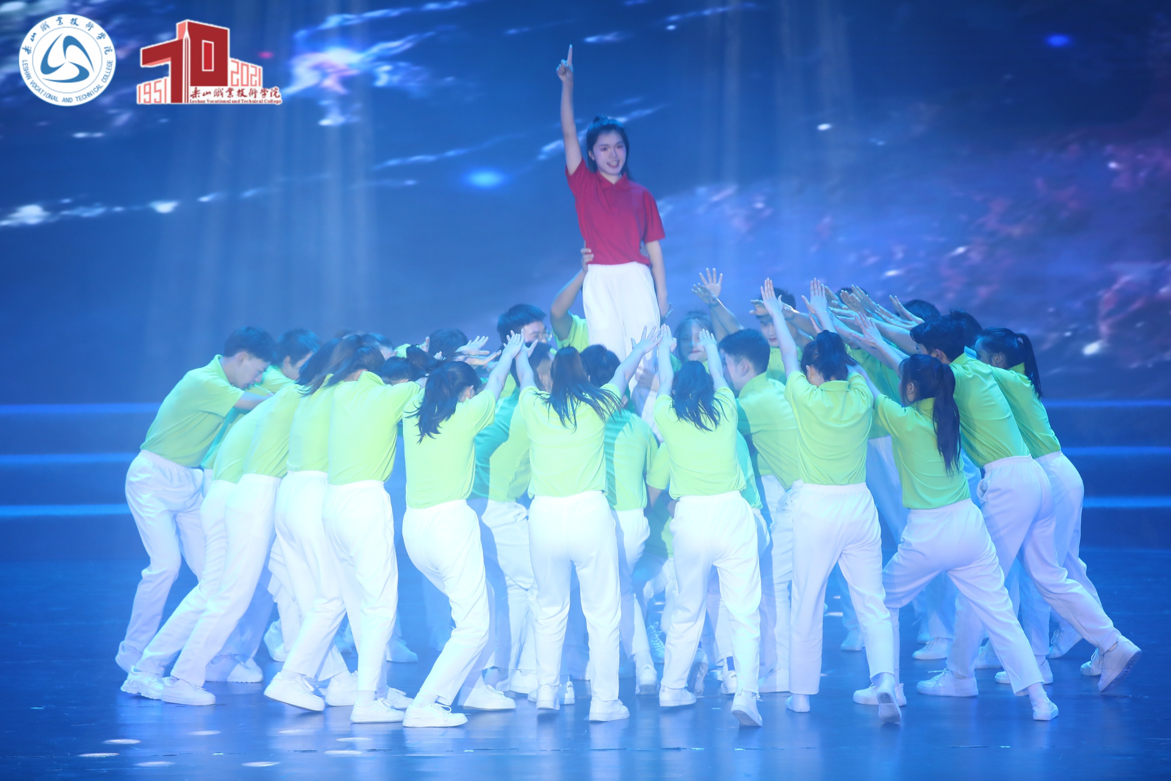 晚会以“春华秋实”为主题,通过《春》《华》《秋》《实》四个篇章展现beat365亚洲版官网办学70年的历程,回顾乐职历史,讲述乐职发展,展望乐职未来和职业教育的美好未来。其中,《春》展现学院初期办学的艰苦奋斗历程,展现老一辈乐职人的开荒精神;《华》立足岗位,立意为乐职师生的青春年华绽放在祖国最需要的地方;《秋》通过学生技能展示和学院办学70年来的丰硕成果,展现乐职学子及学校的进步与成长;《实》号召乐职人肩负起新时代职业教育的重任,不忘初心、牢记使命,努力让学院伴随职业教育越飞越高。