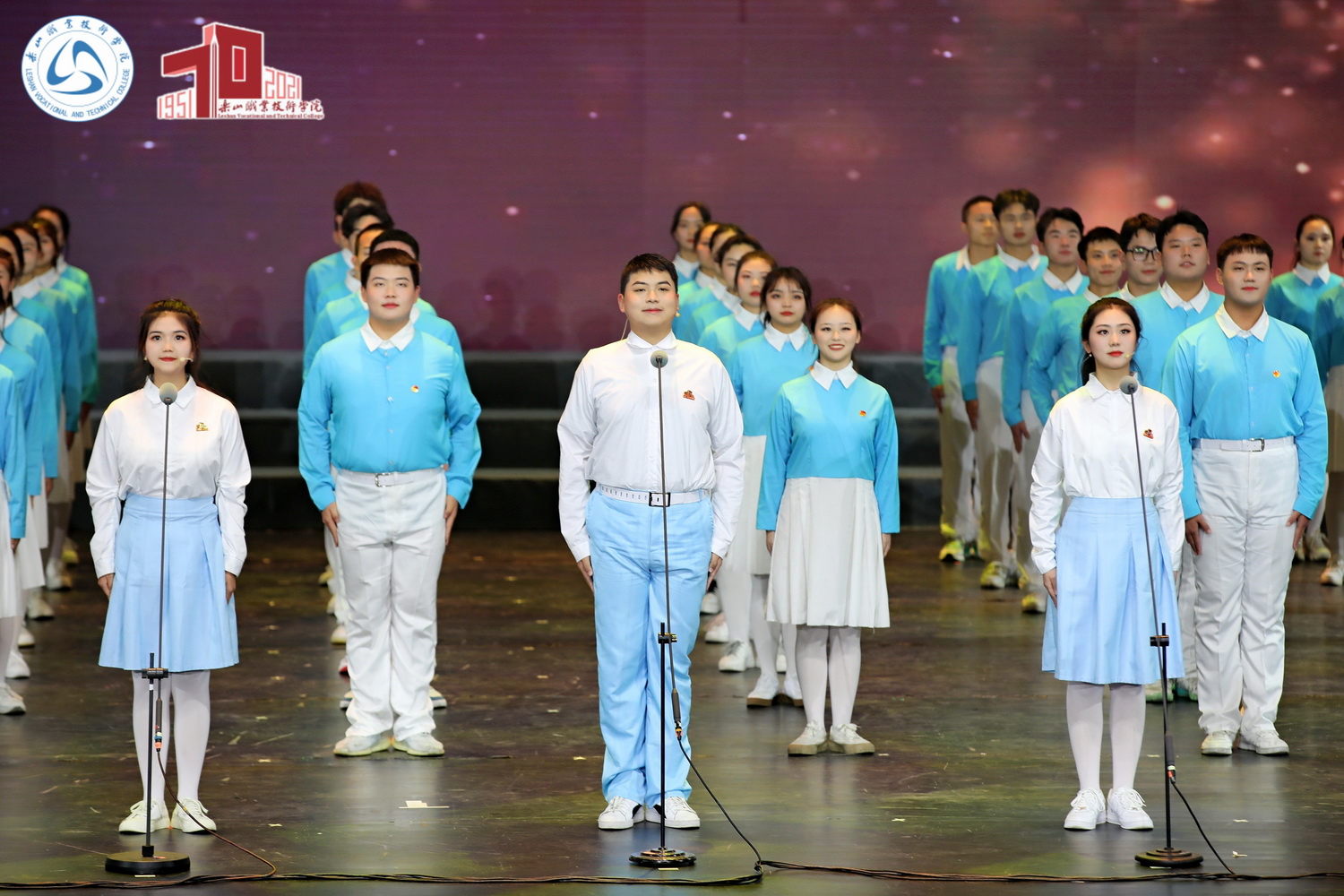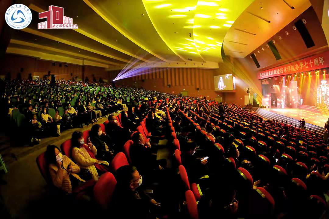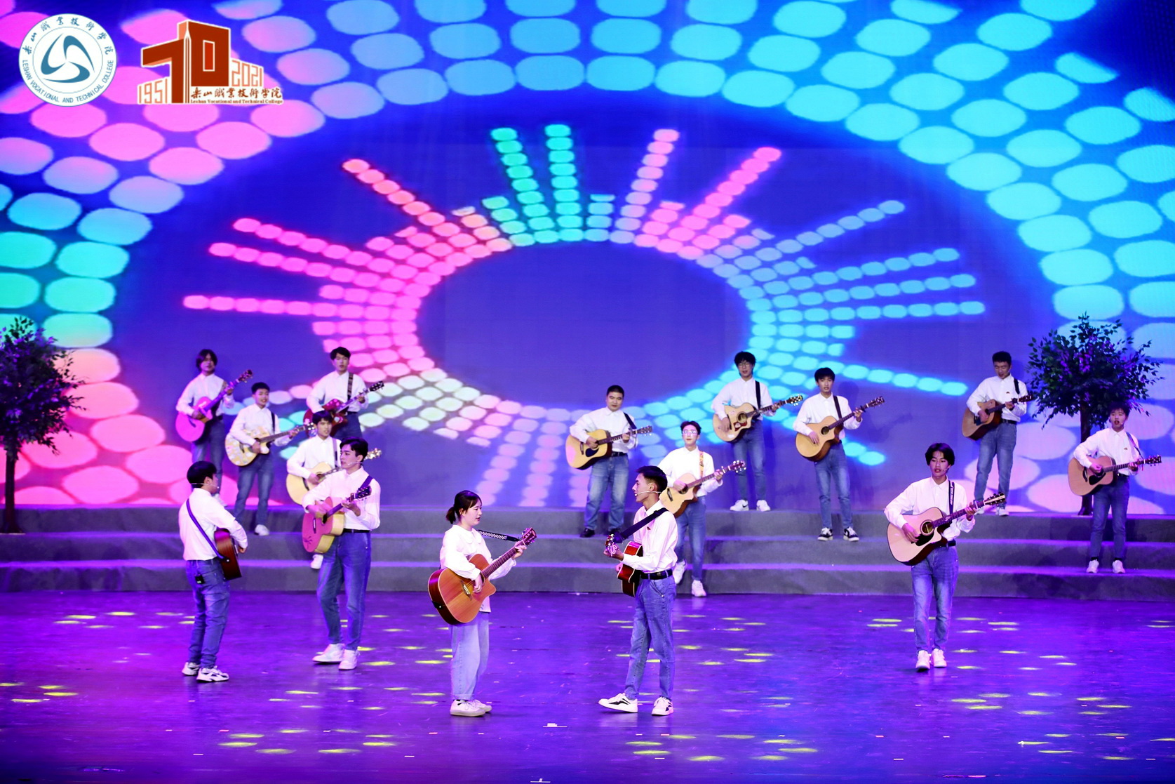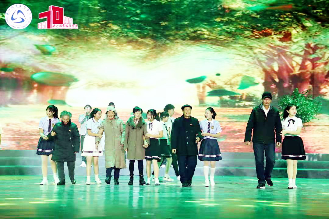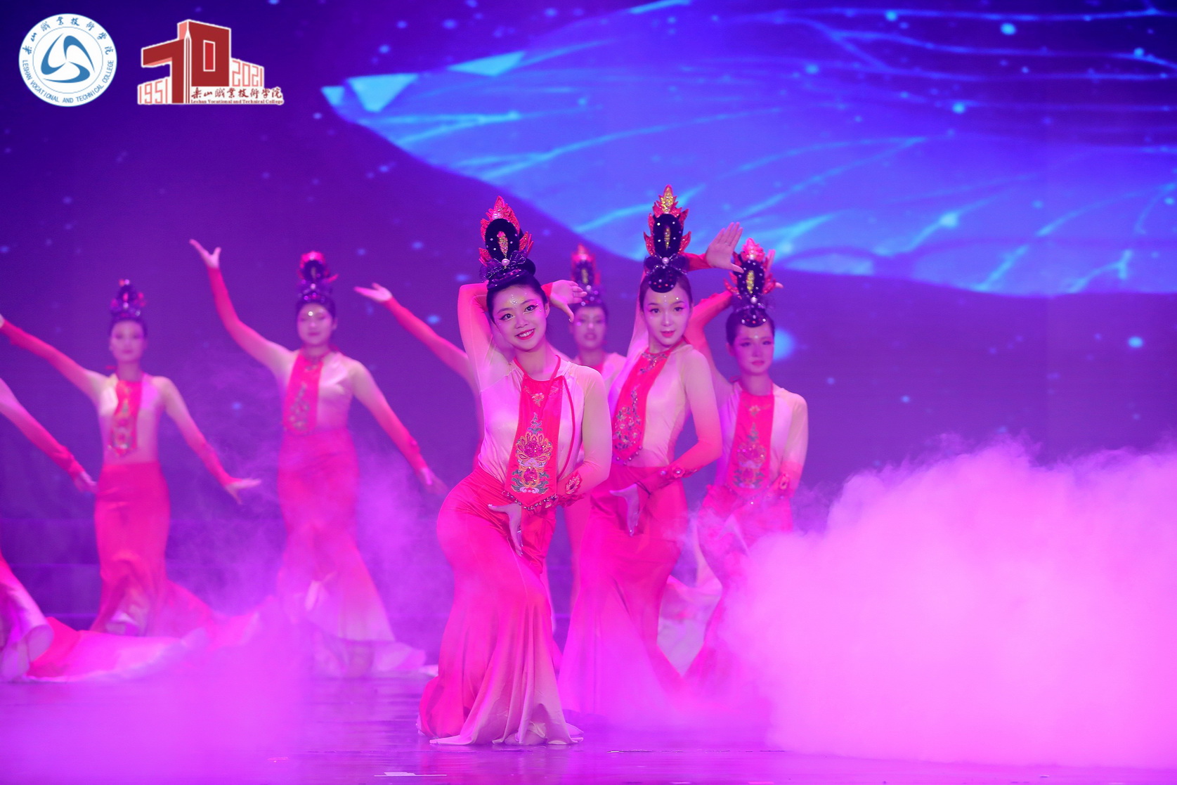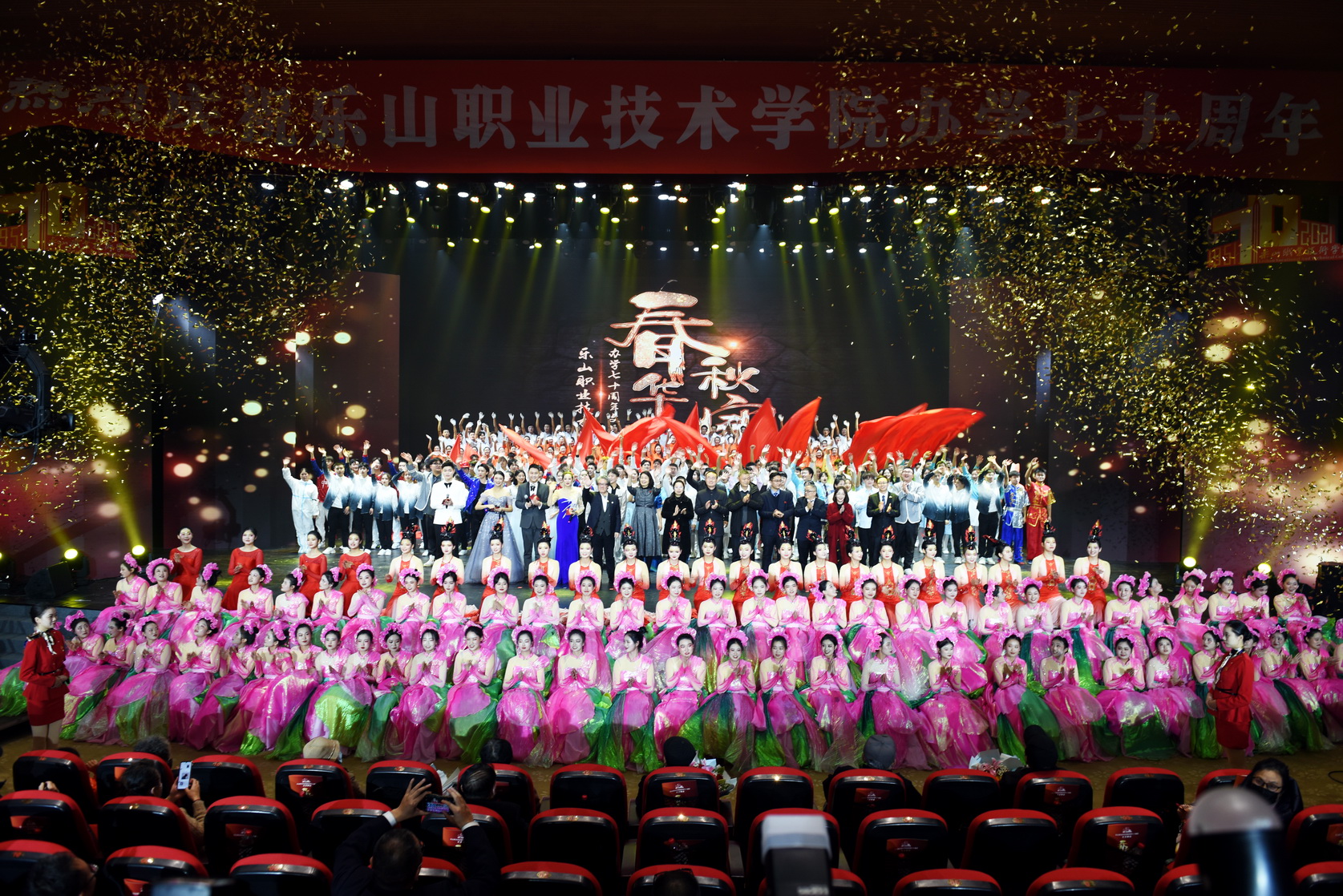 晚会以“春华秋实”为主题,通过《春》《华》《秋》《实》四个篇章展现beat365亚洲版官网办学70年的历程,回顾乐职历史,讲述乐职发展,展望乐职未来和职业教育的美好未来。其中,《春》展现学院初期办学的艰苦奋斗历程,展现老一辈乐职人的开荒精神;《华》立足岗位,立意为乐职师生的青春年华绽放在祖国最需要的地方;《秋》通过学生技能展示和学院办学70年来的丰硕成果,展现乐职学子及学校的进步与成长;《实》号召乐职人肩负起新时代职业教育的重任,不忘初心、牢记使命,努力让学院伴随职业教育越飞越高。