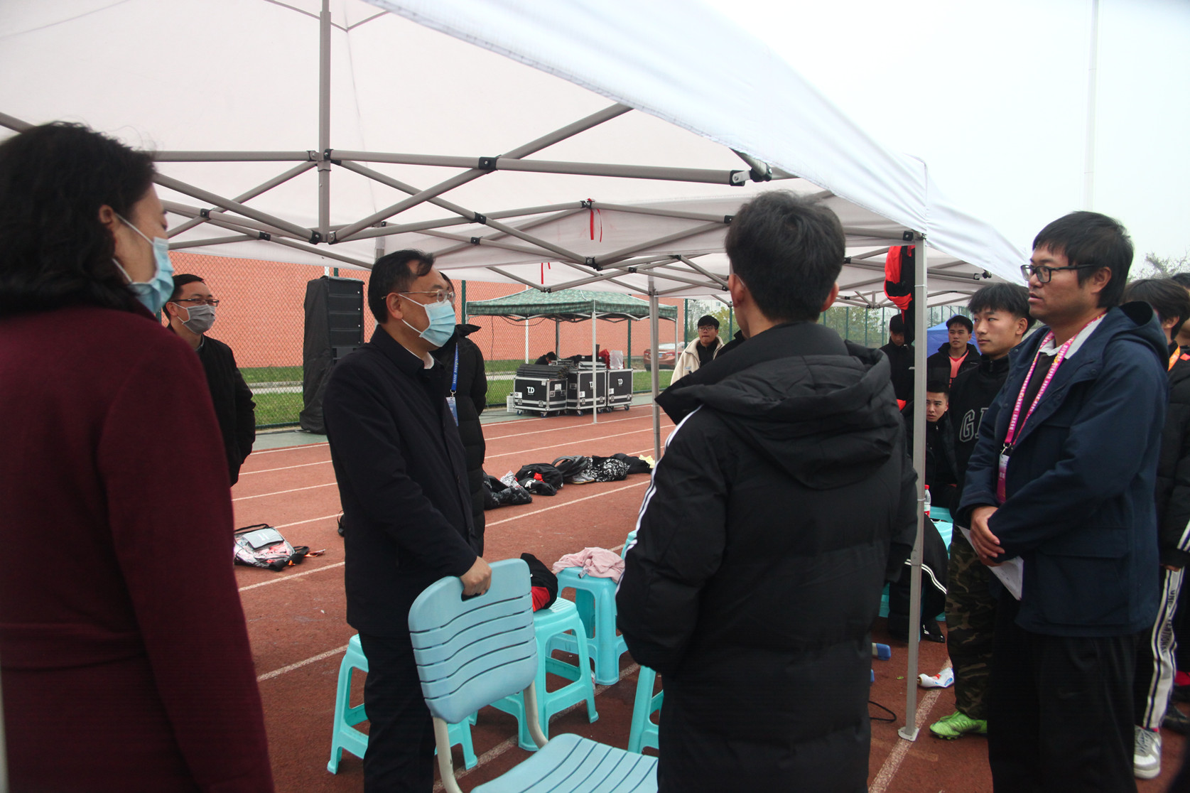 在beat365亚洲版官网足球场,张澜涛听取了学校赛事承办情况的汇报,详细了解了赛事组织、疫情防控等工作,慰问了现场工作人员和正在对决的雅安职业技术学院代表队、成都工业职业技术学院代表队,并现场观看了球员们的精彩比赛。张澜涛代表教育厅,对赛事承办工作给予了高度评价,对运动员们的拼搏精神和团队意识给予了充分肯定。
