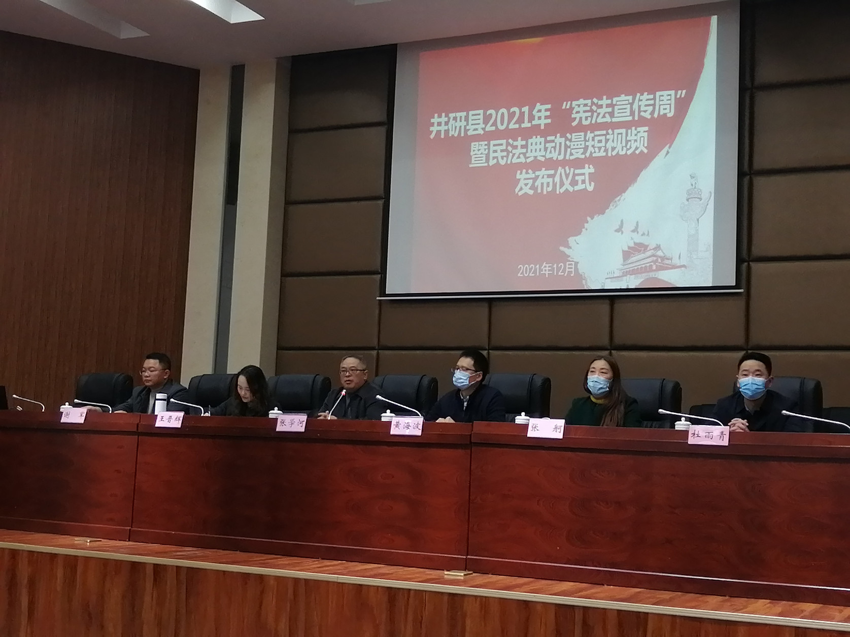 发布仪式由县委副书记、县委全面依法治县委员会副主任王晋辉主持。乐山市司法局党委委员、副局长黄海波发表致辞,感谢学院对井研县普法活动的大力支持,希望井研县在全县范围内持续开展宪法学习宣传和民法典动漫短视频的展播活动,引导广大群众自觉维护宪法和法律权威,营造尊法学法守法用法的良好氛围,为弘扬法治精神、建设法治社会作出努力。