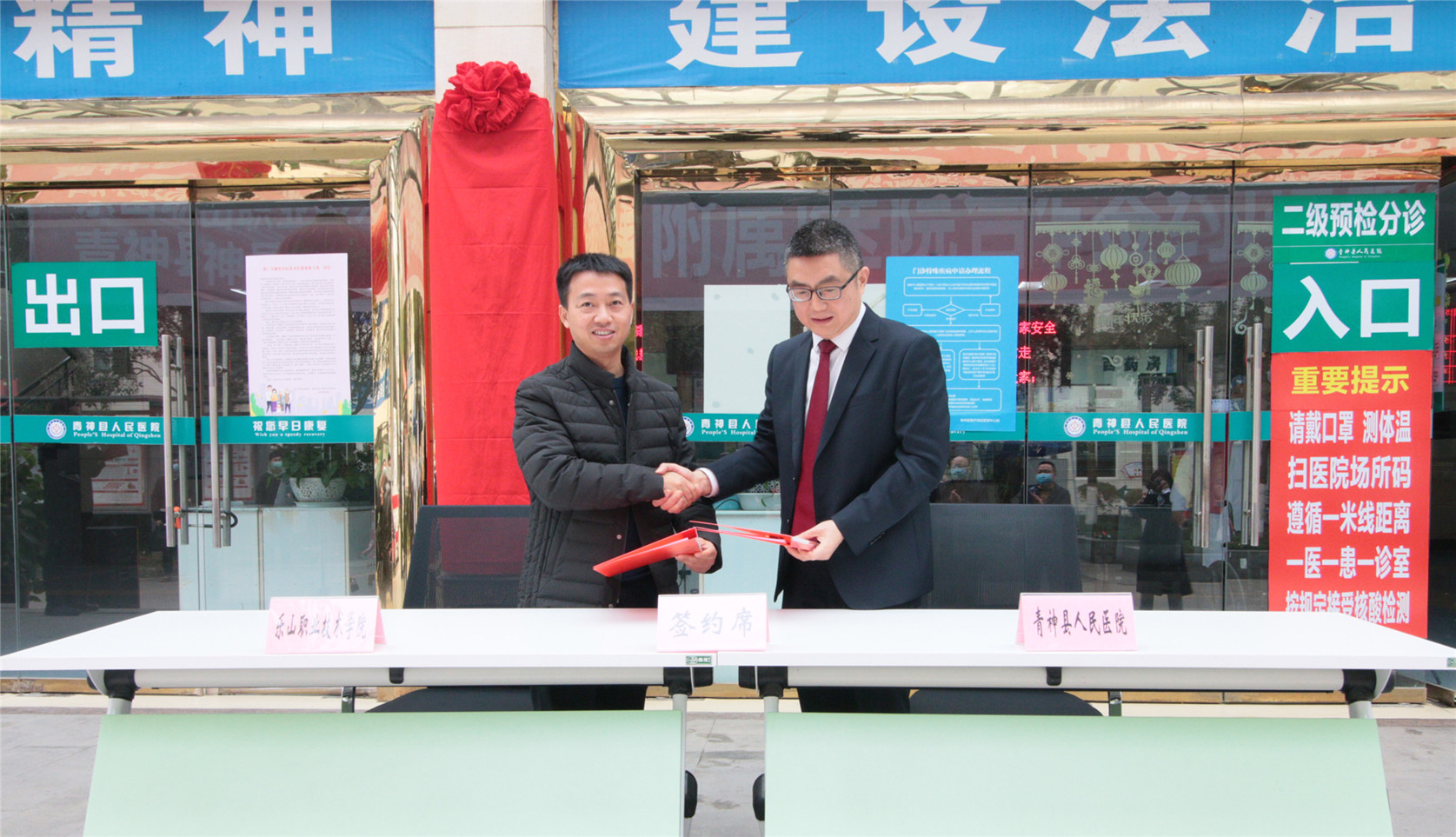 随后,邓红阳与封家福现场签订了《非直属附属医院合作协议》,并与易群一起为“非直属附属医院”揭牌。