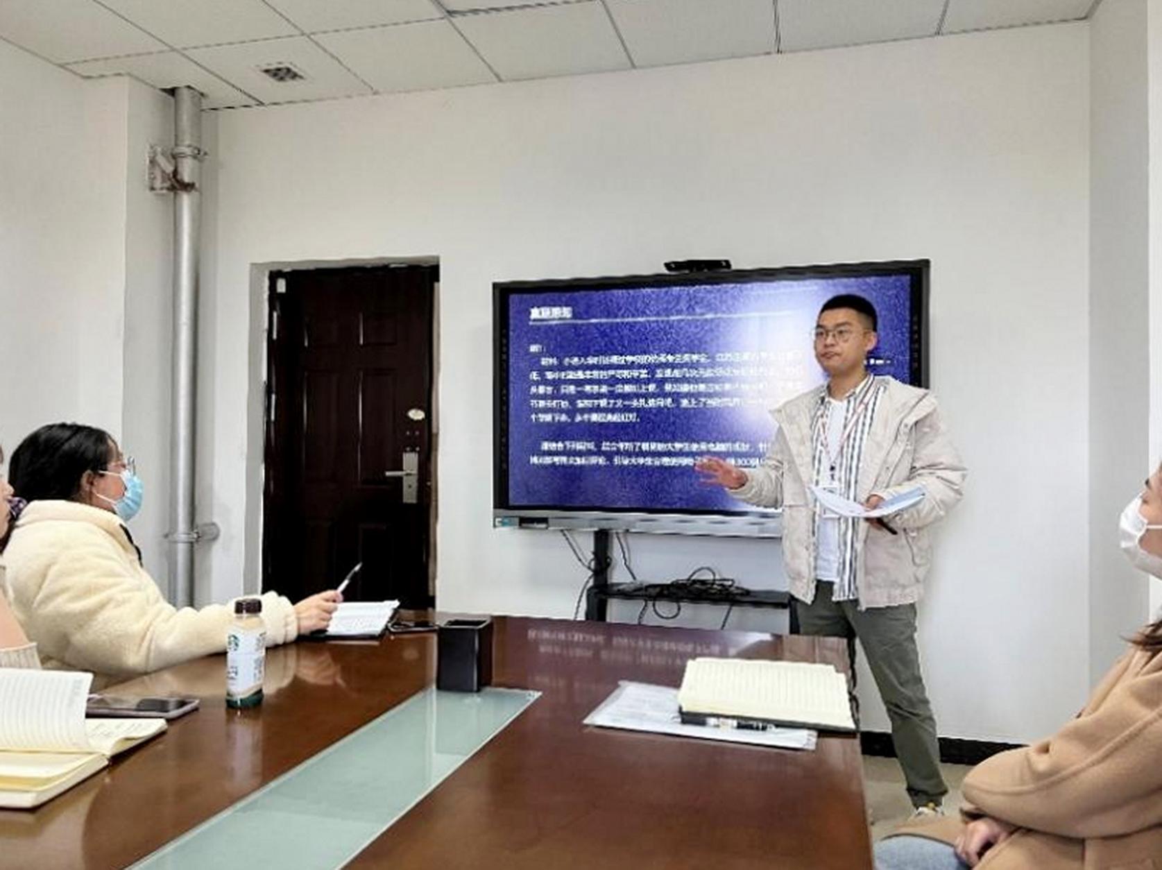 在博文写作环节,吴琼阳从博文概述、博文方法、博文分享三方面向大家作了讲解。吴老师系统扎实的写作功底、别开生面的博文案例和风趣幽默的互动让即将代表我院参加全省辅导员职业能力大赛的老师充满信心。