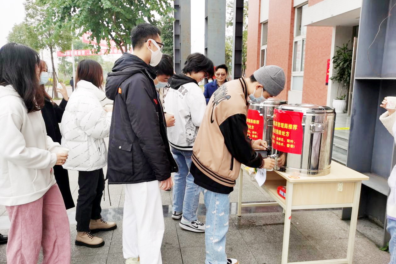 为更好地防控新冠疫情,增强全院师生员工新冠肺炎的肌体免疫力,按照学院党委和行政的统一安排部署,11月18日至19日,后勤处参照四川省中医药管理局推荐处方熬制了预防新冠肺炎中药“大锅汤”,提供给全院师生免费饮用。