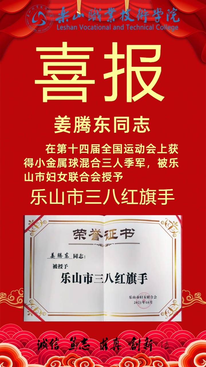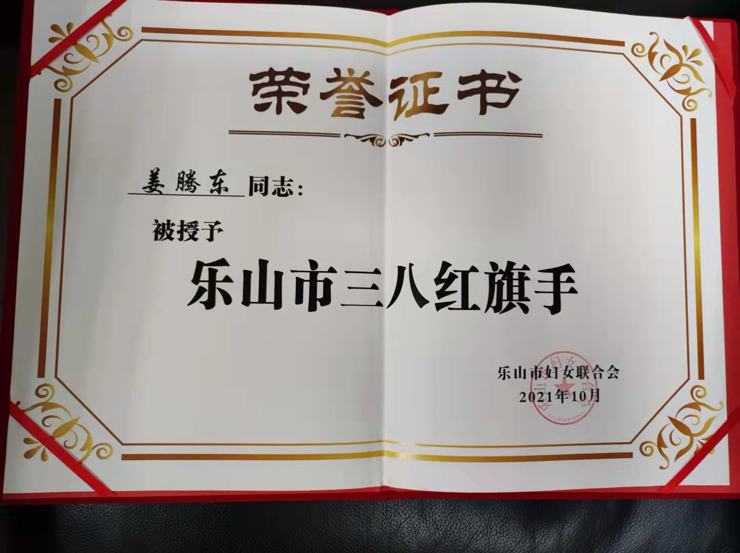 10月,姜腾东同志被乐山市妇联授予“乐山市三八红旗手”称号。
