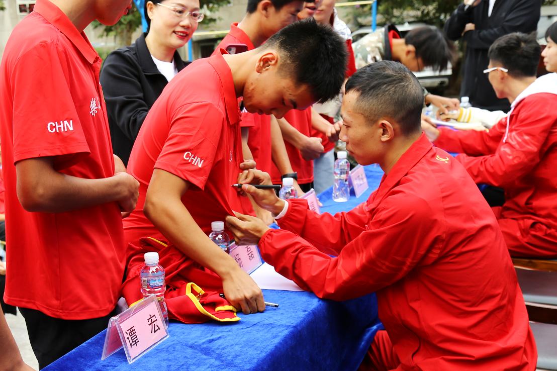 10月11日上午,三名优秀运动员杨磊、陈程和俄地晶凌满载荣誉,回到乐山,回访母校,表达绿叶对根的深情厚谊。