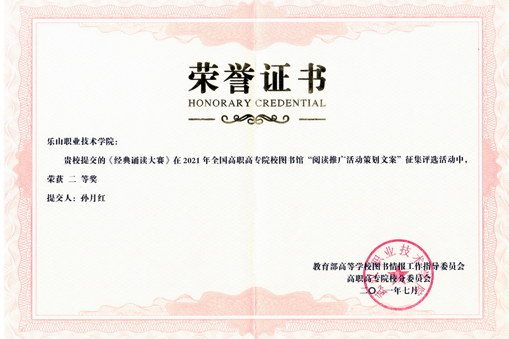 近日,由教育部高等学校图书情报工作指导委员会高职高专院校分委员会主办的,全国高职高专院校图书馆“阅读推广活动策划文案”征集评选结果揭晓,beat365亚洲版官网图书馆阅读推广案例“经典诵读大赛”荣获二等奖。