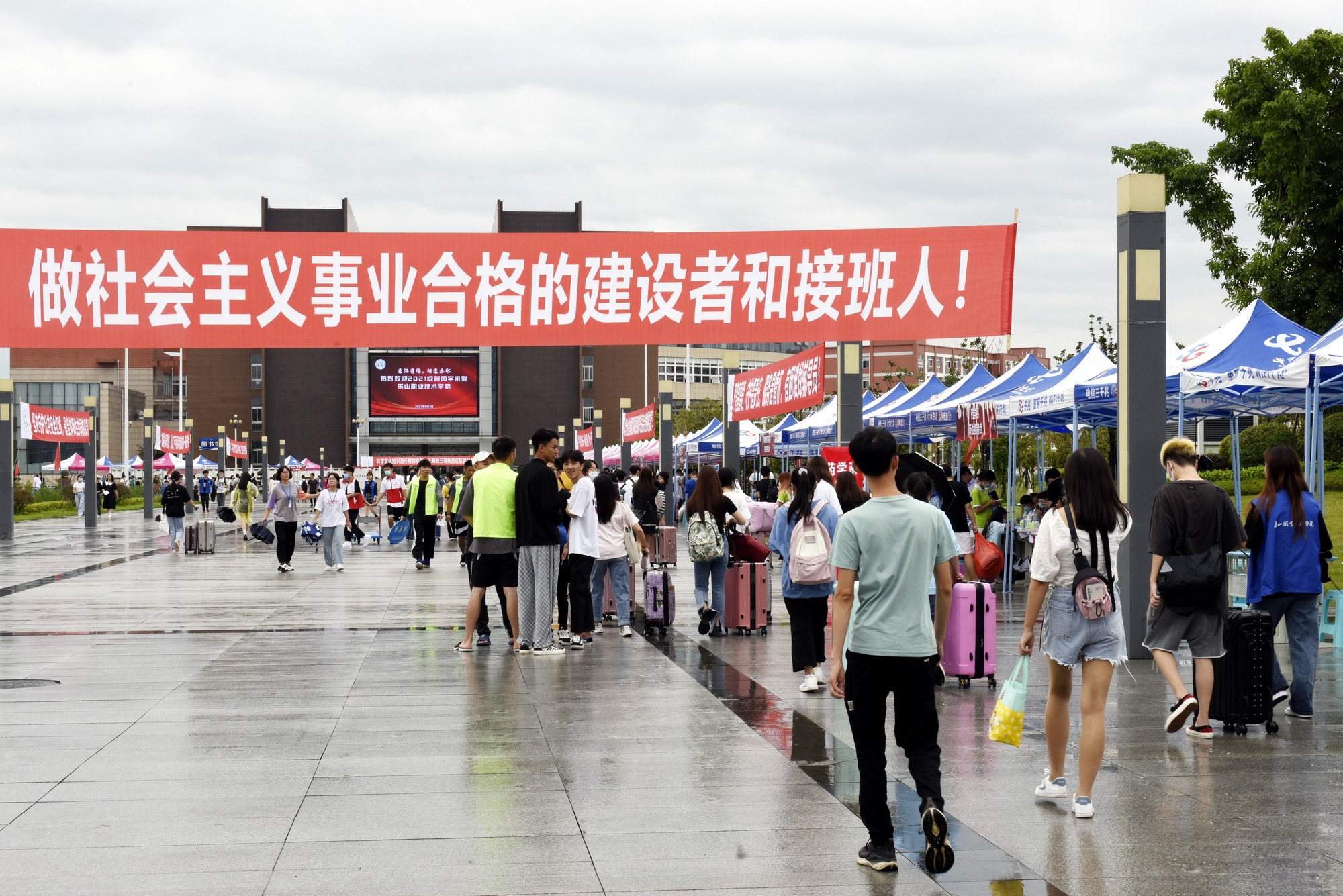 尽管9月4日的上午天公有些不作美,雨势忽大忽小,但新生感受到的热情,却足以将雨水蒸发。