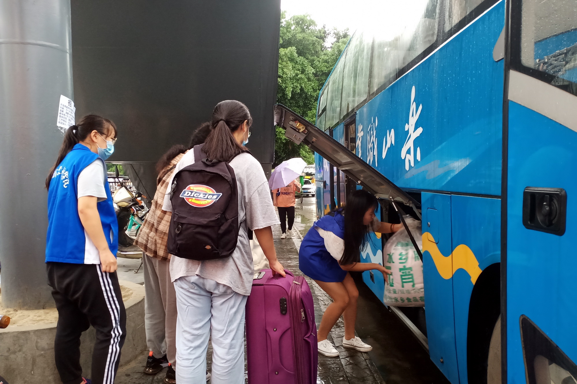 党政办安排了两辆大巴校车作为新生转运到校车辆,在客运中心站、高铁站、联运汽车站和学院之间迎来送往。